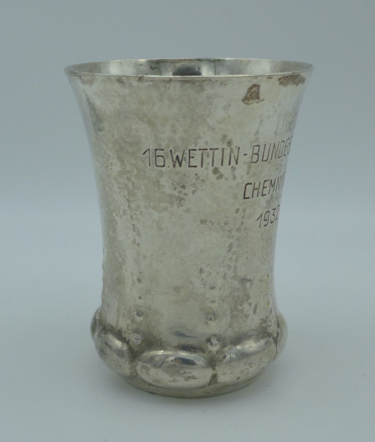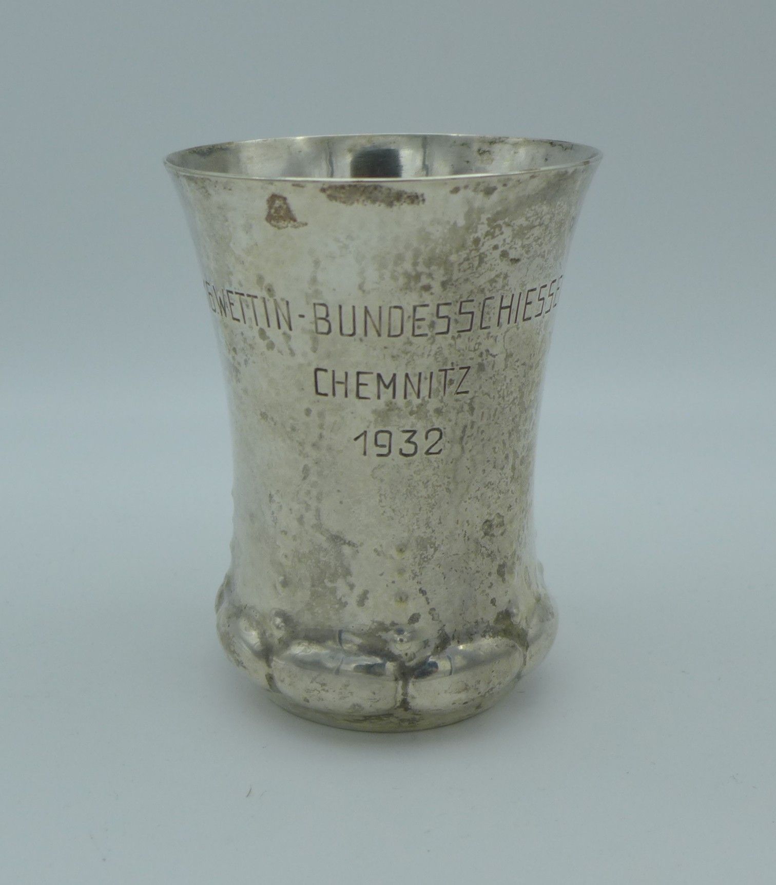 16. Wettin Bundesschiessen Chemnitz 1932 Silber 800er Becher Pokal