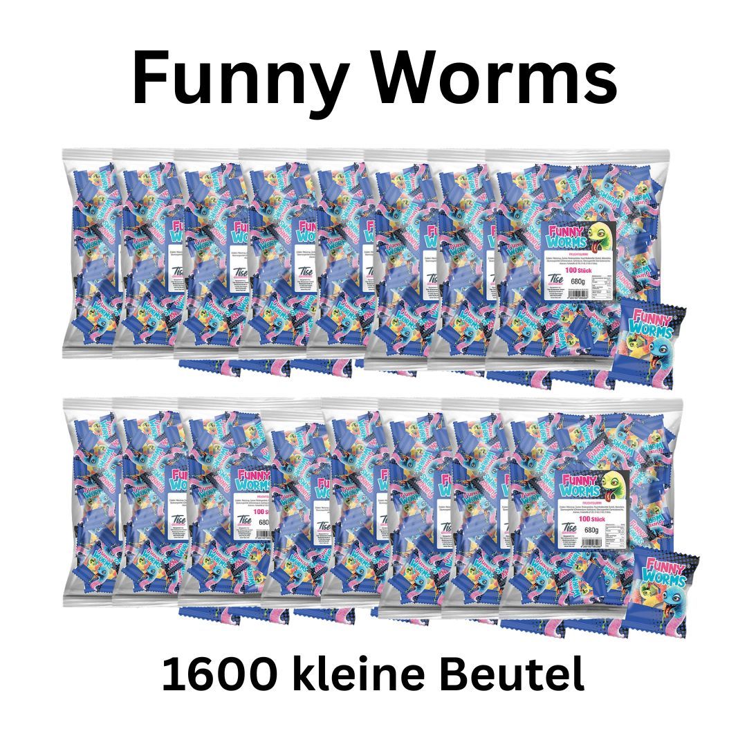 1600x Funny Worms Fruchtgummi Mini Beutel einzeln verpackt Süßigkeiten XXL