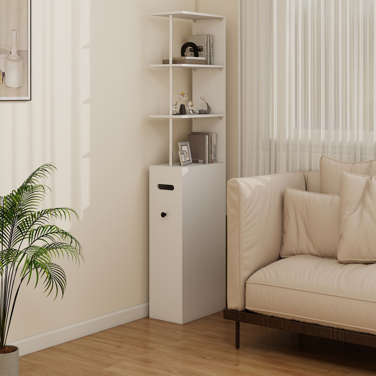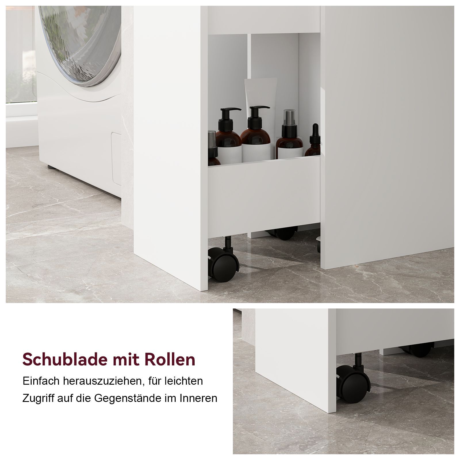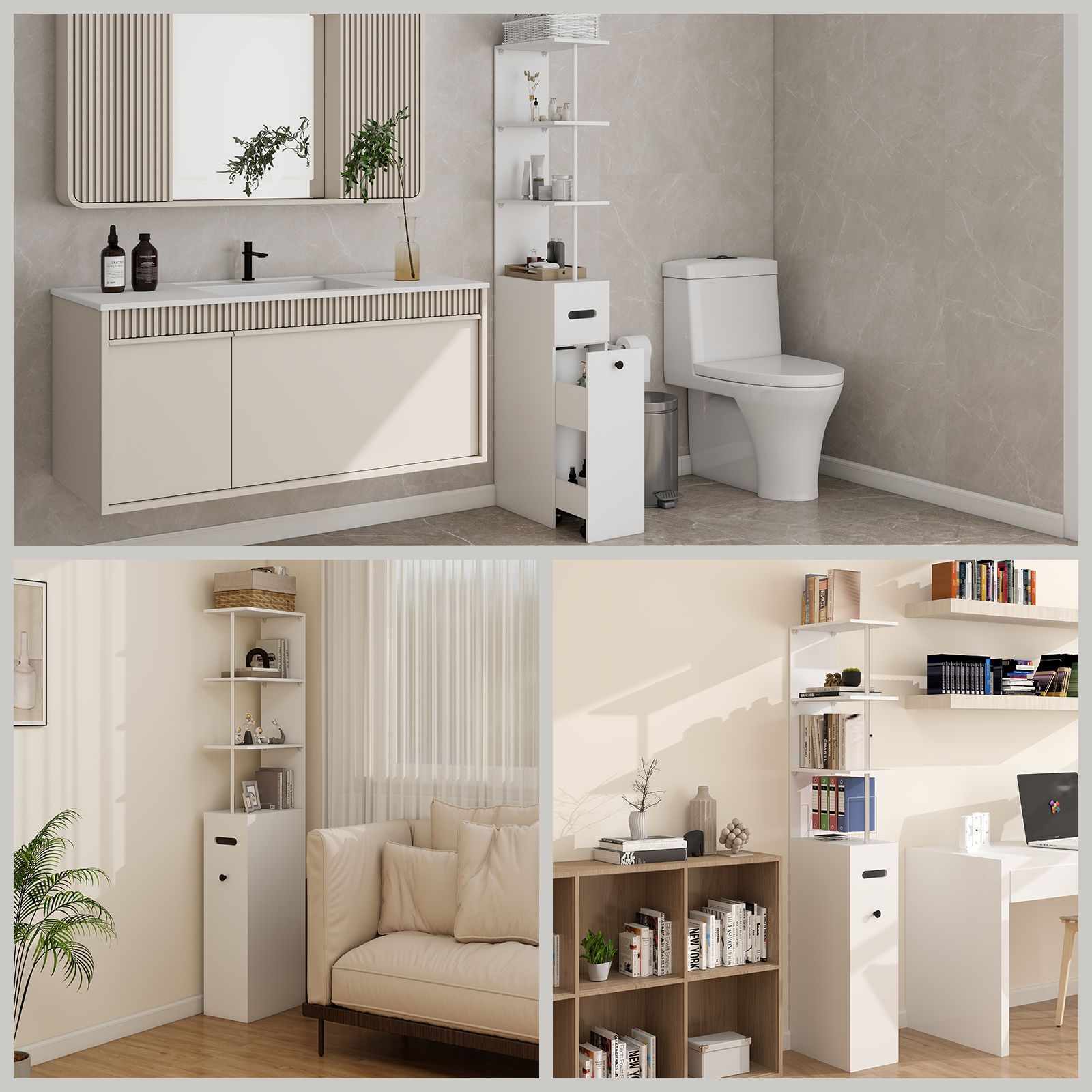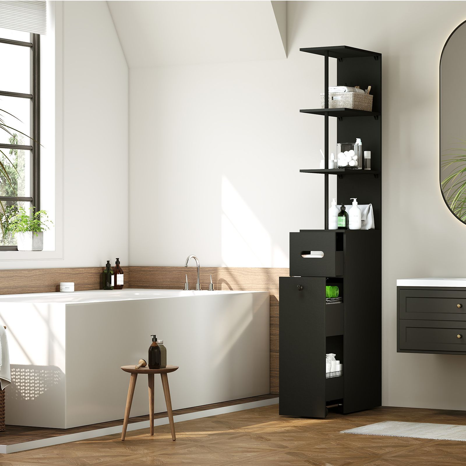 • 5-stöckiger Badezimmerschrank schmal, freistehender Hochschrank mit 2 Lamellentür
