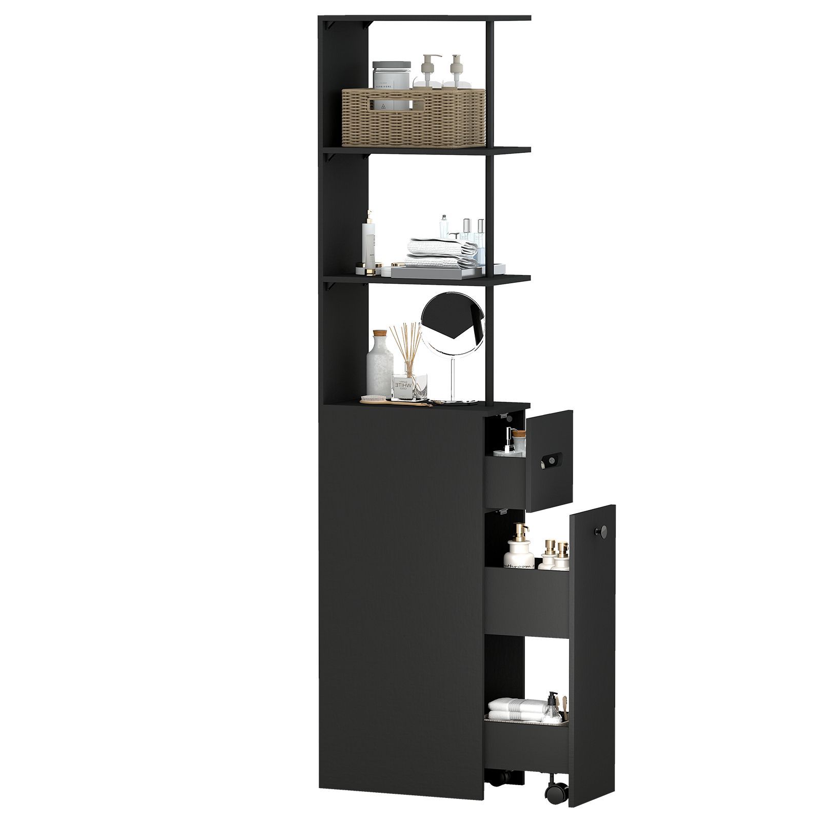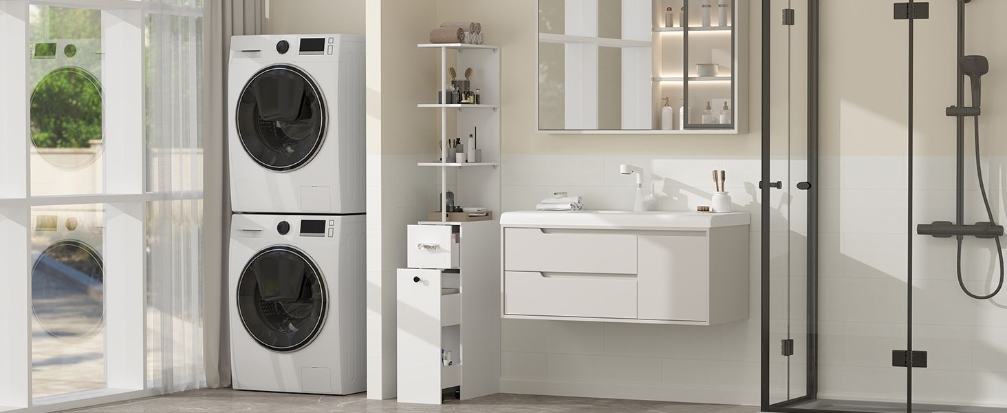 Badschrank Hochschrank schmal, Badezimmerschrank mit 2 Türen, 1 Schublade