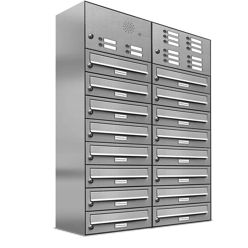16er Premium Edelstahl Briefkasten Außen mit Klingel Wand Postkasten design 2x8