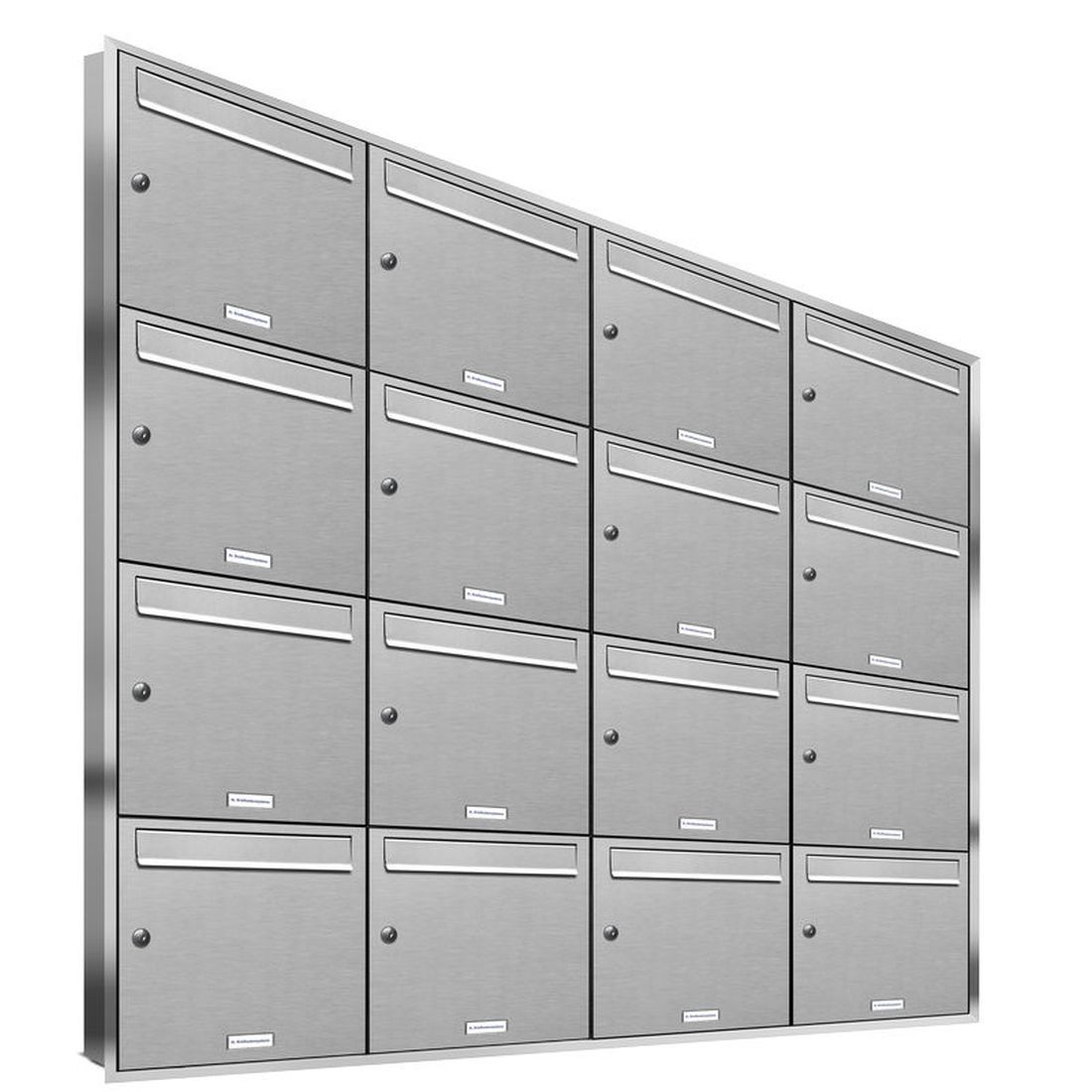 16er Premium Unterputz Edelstahl Briefkasten 4x4 Anlage Postkasten Fach A4