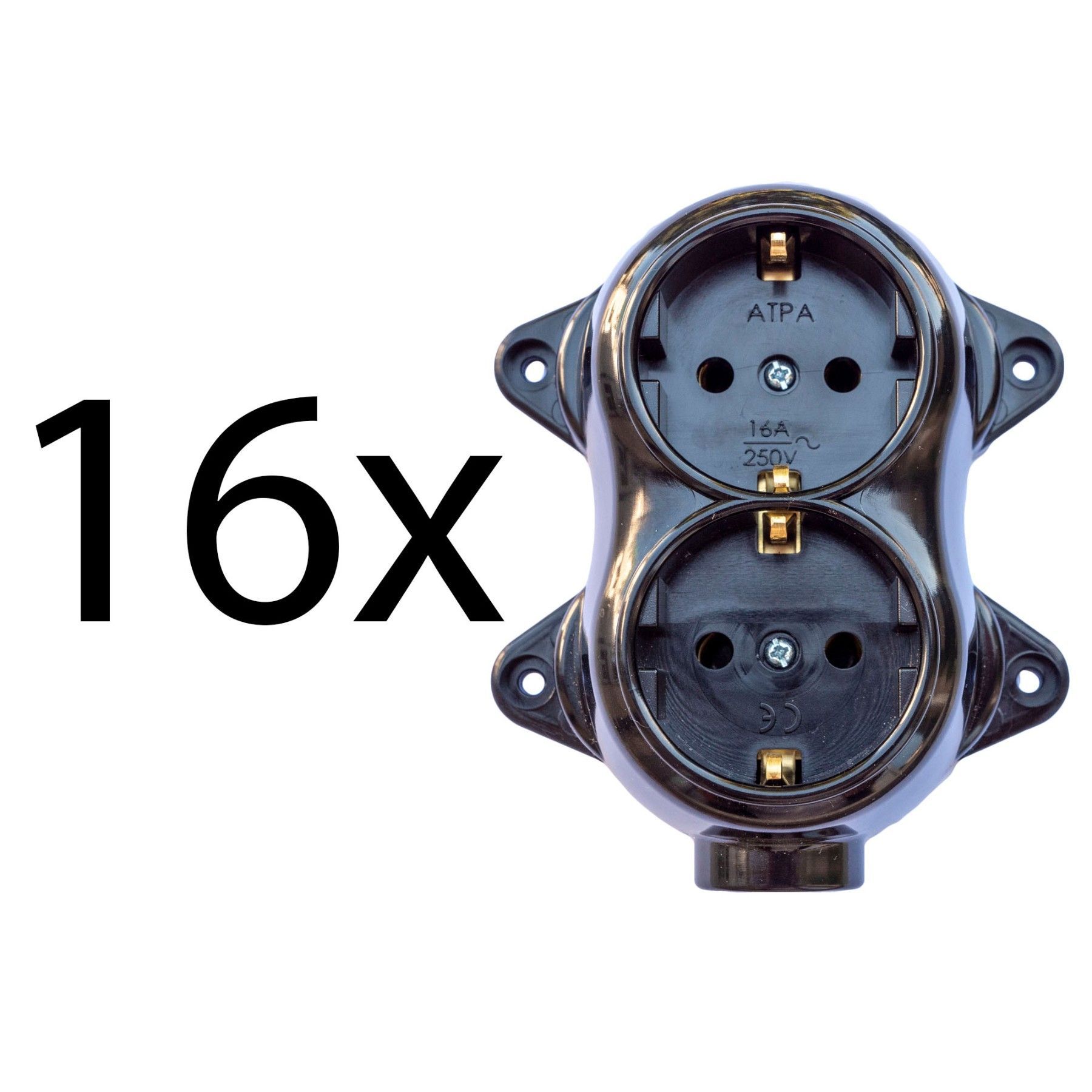 16Stk SET Steckdose retro Aussicht-2-fach-16A-250V-Aufputz-Montage Schwarz RETRO