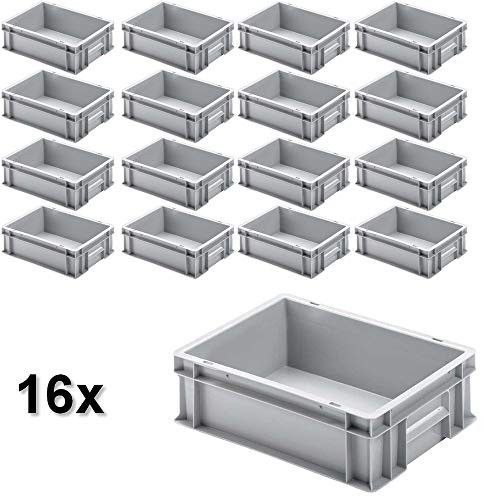 16x Euro-Stapelbehälter mit 2 Griffleisten, LxBxH 400x300x120 mm, 11 Liter, grau