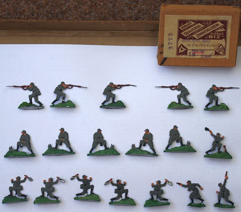 17 Zinnfiguren "Deutsche Stahlhelm Infanterie im Grabenkampf"