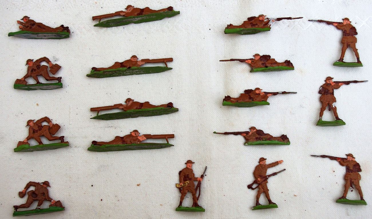 Aus der Epoche 1. Weltkrieg. Höhe: verschieden Wir schätzen das Alter der Figuren auf 80 - 90 Jahre. Wir können nicht ausschließen, daß ein Teil der Figuren von einem anderen Hersteller stammt.