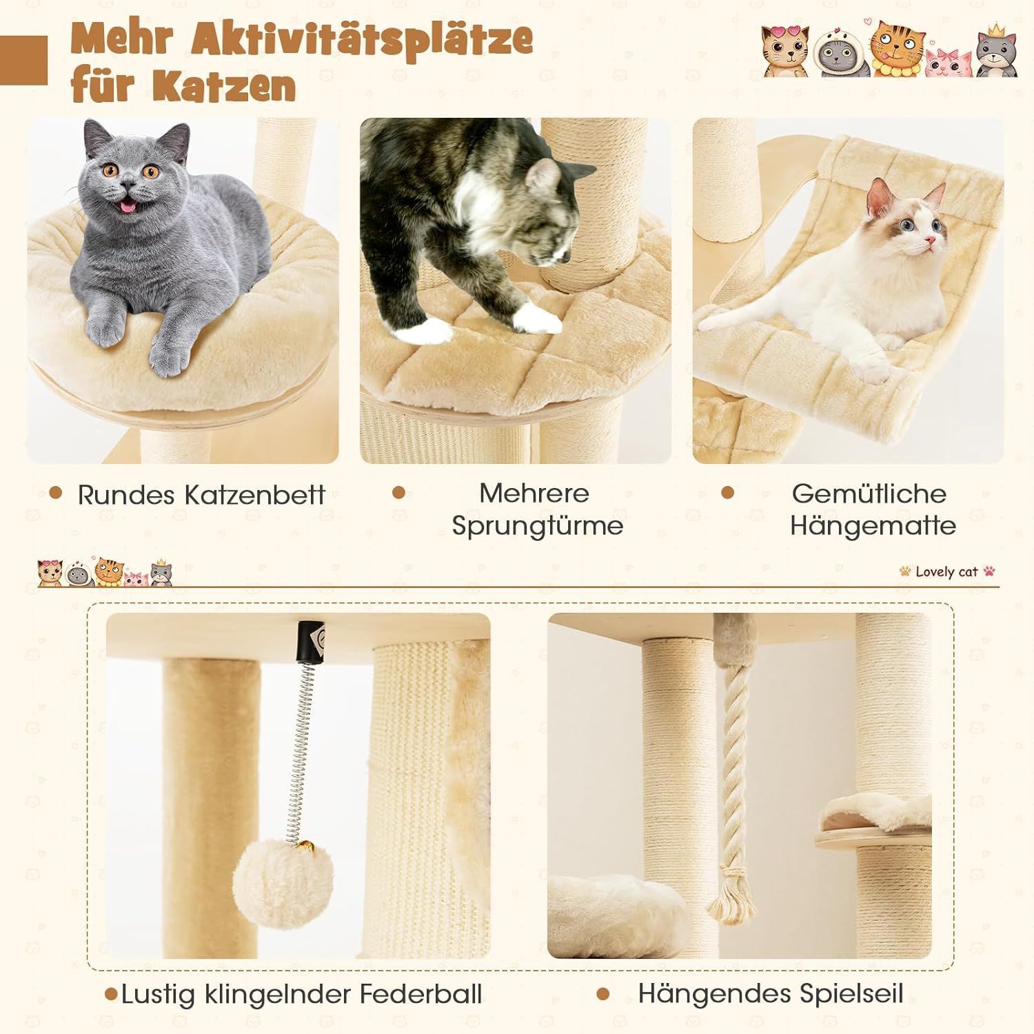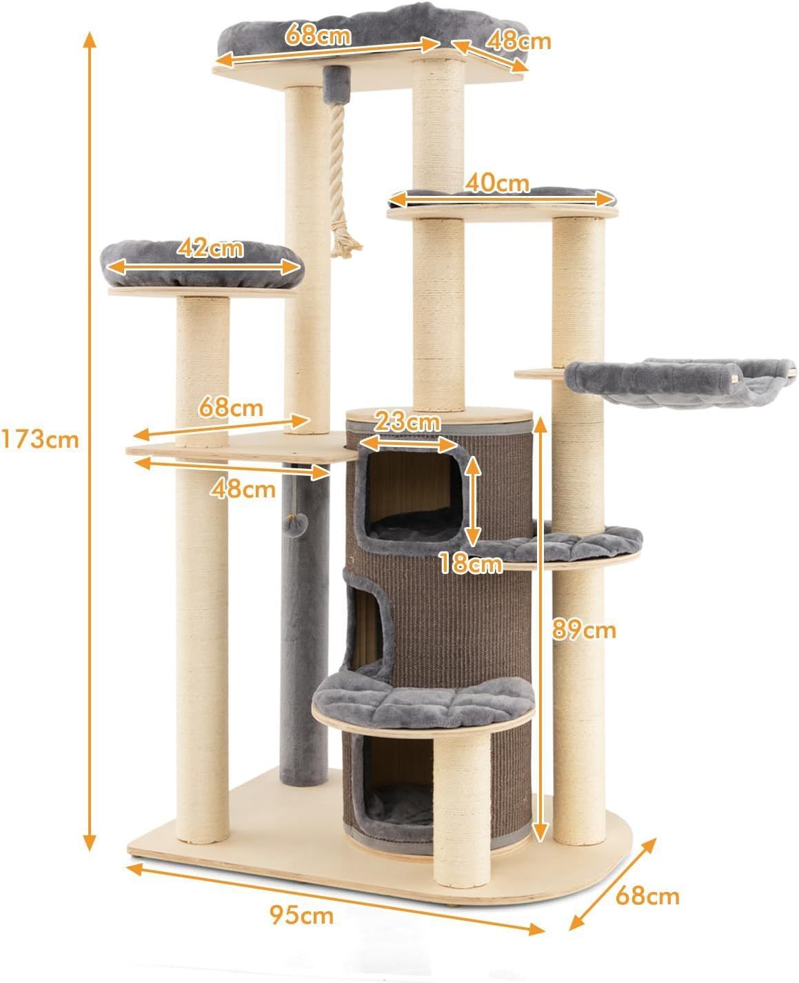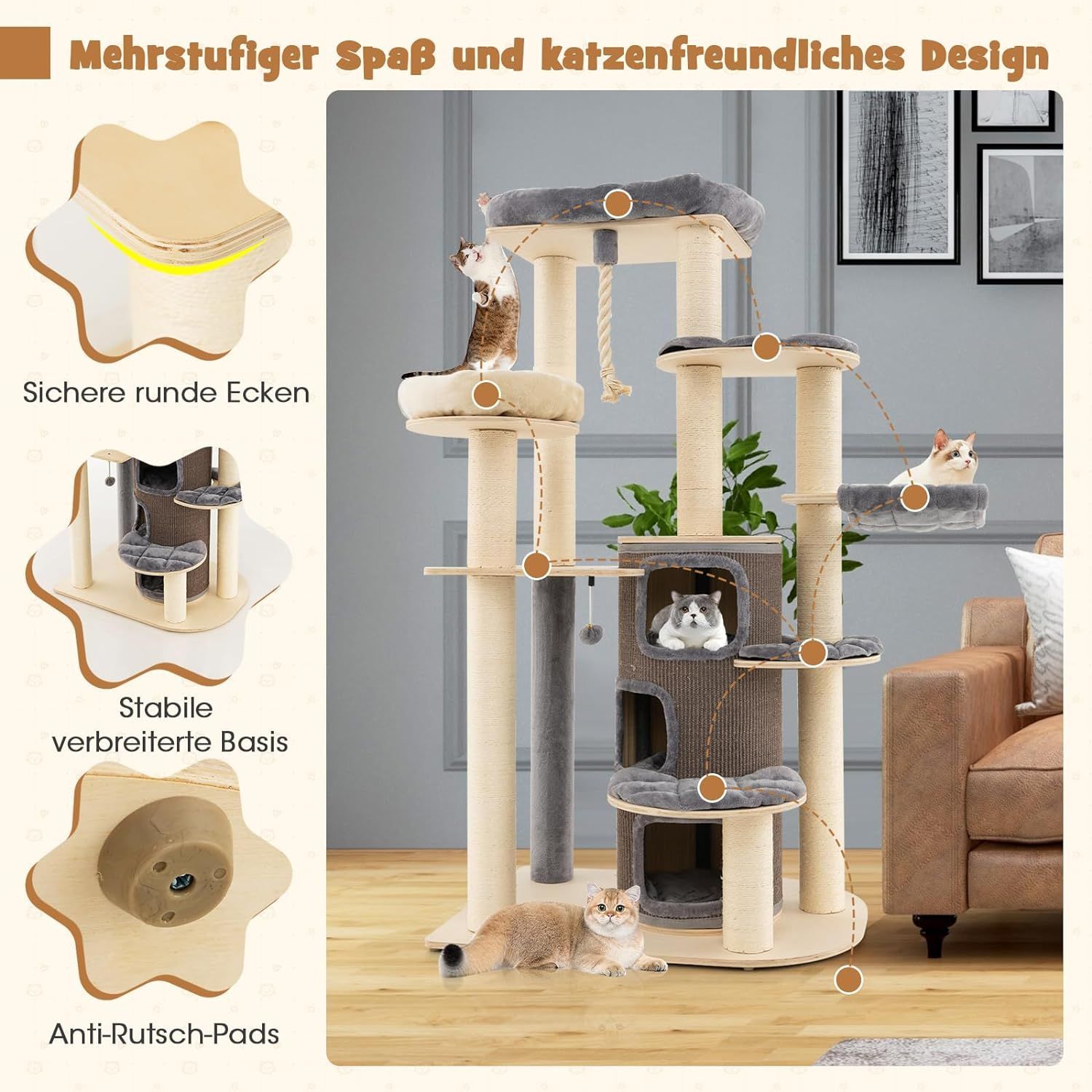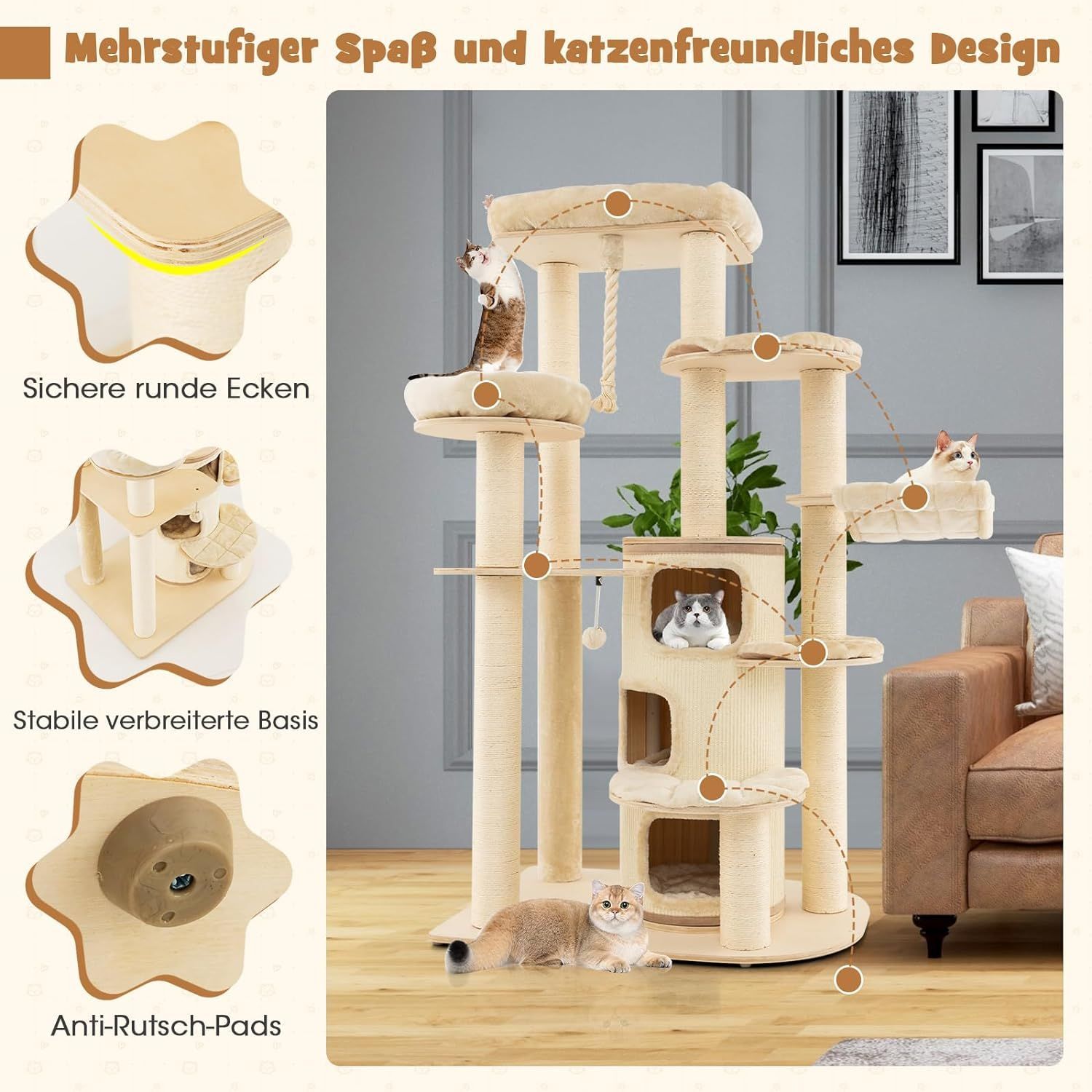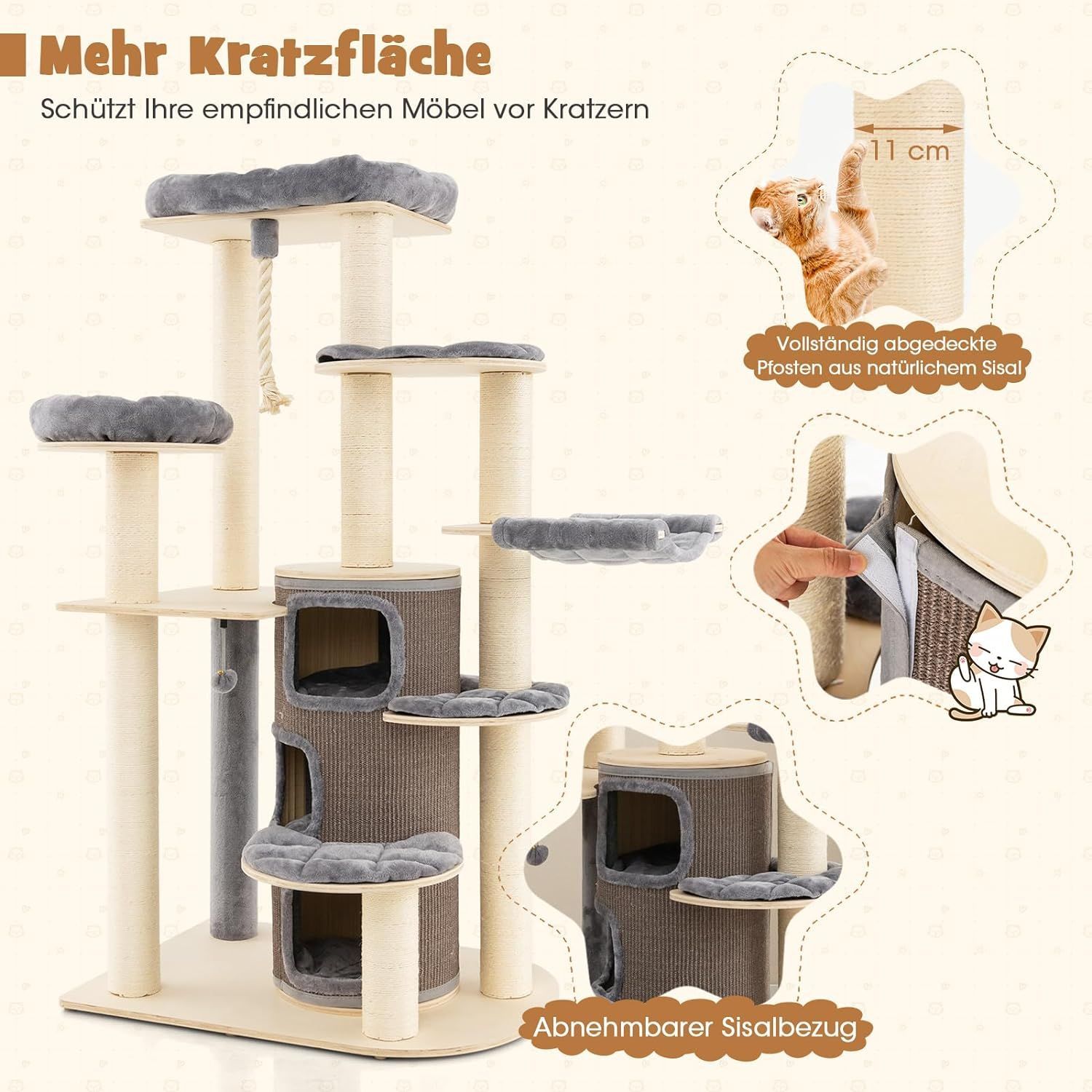 173cm Kratzbaum Holz, Katzenbaum Groß, Katzenkratzbaum mit Katzenhöhle & Matten