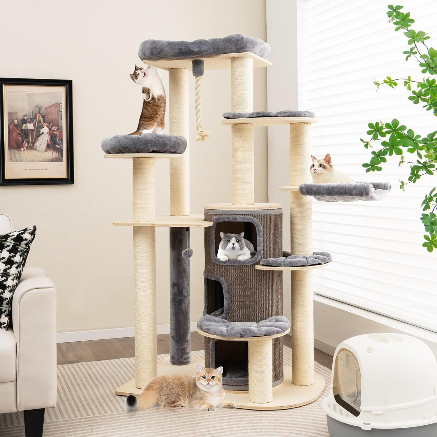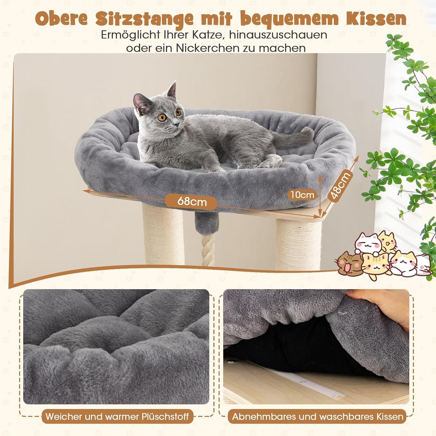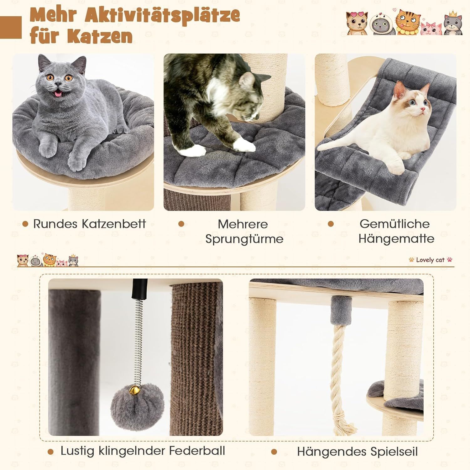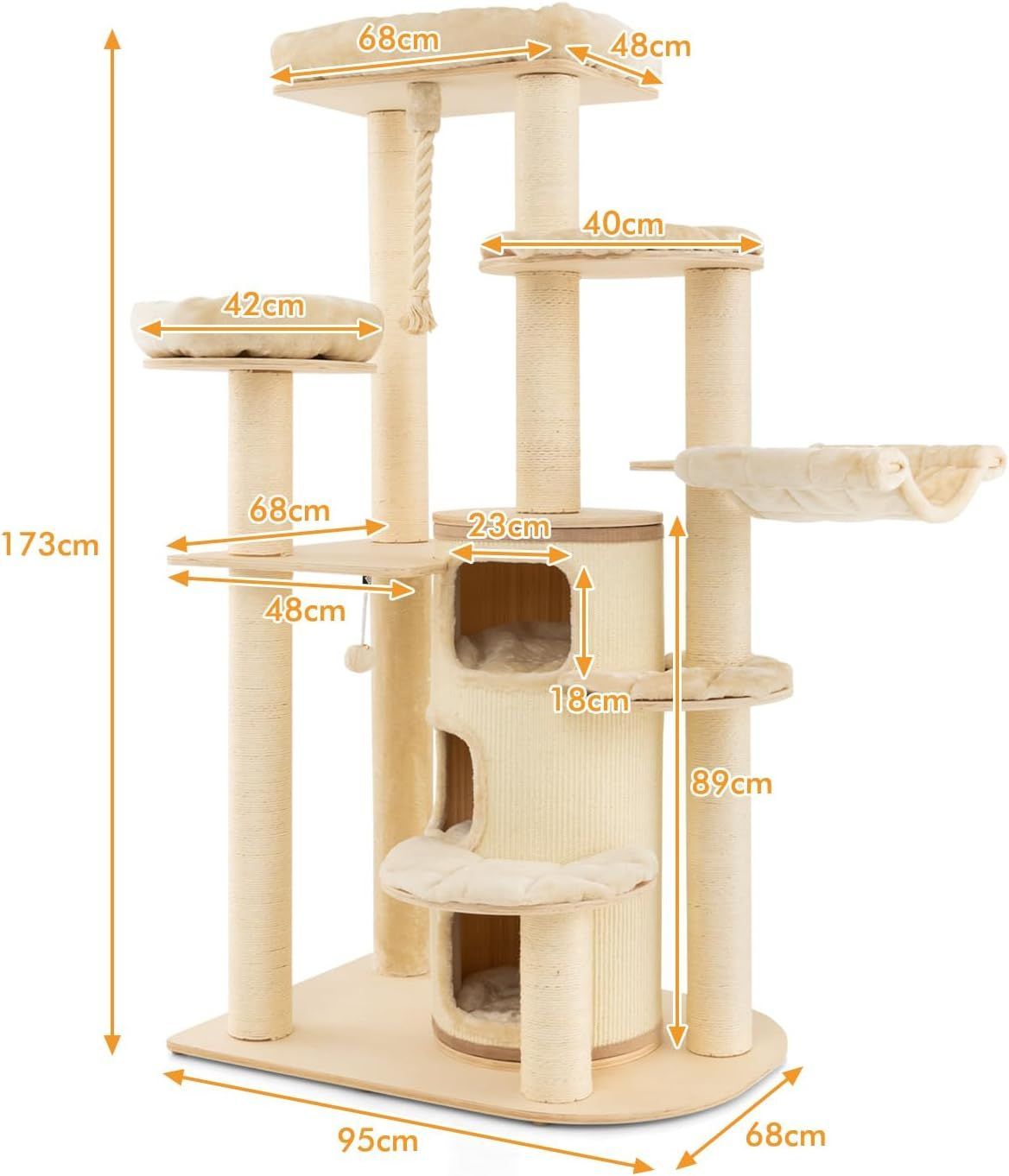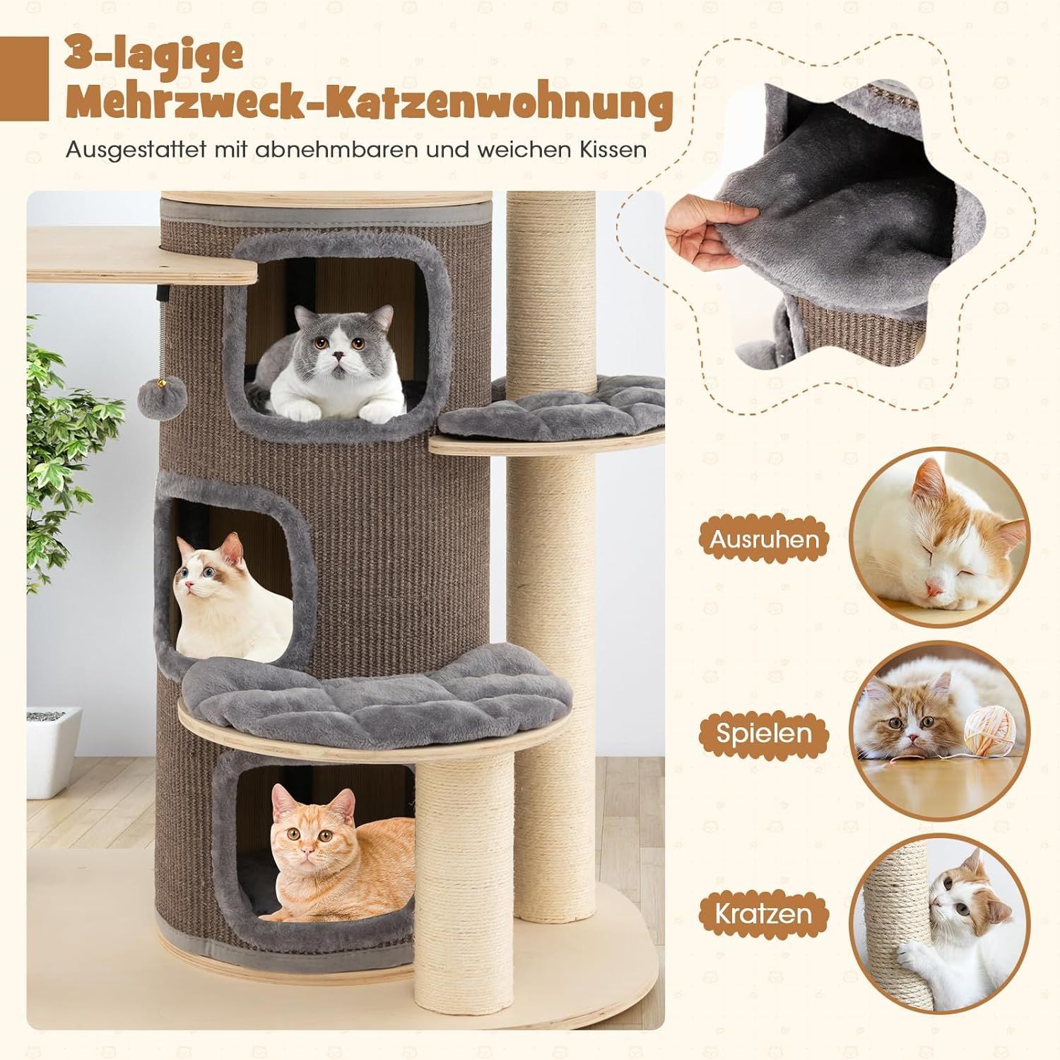 173cm Kratzbaum Holz, Katzenbaum Groß, Katzenkratzbaum mit Katzenhöhle & Matten