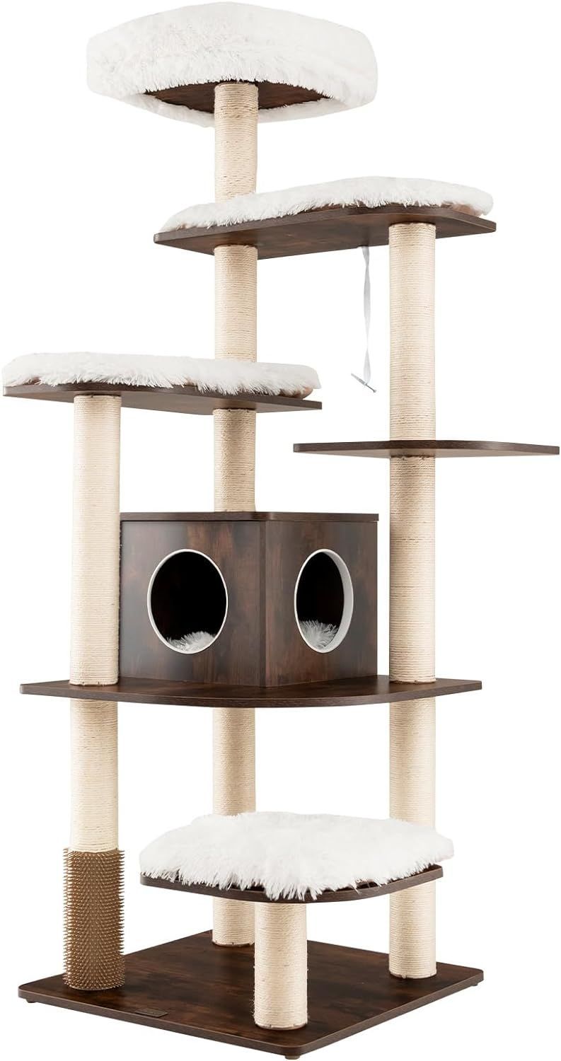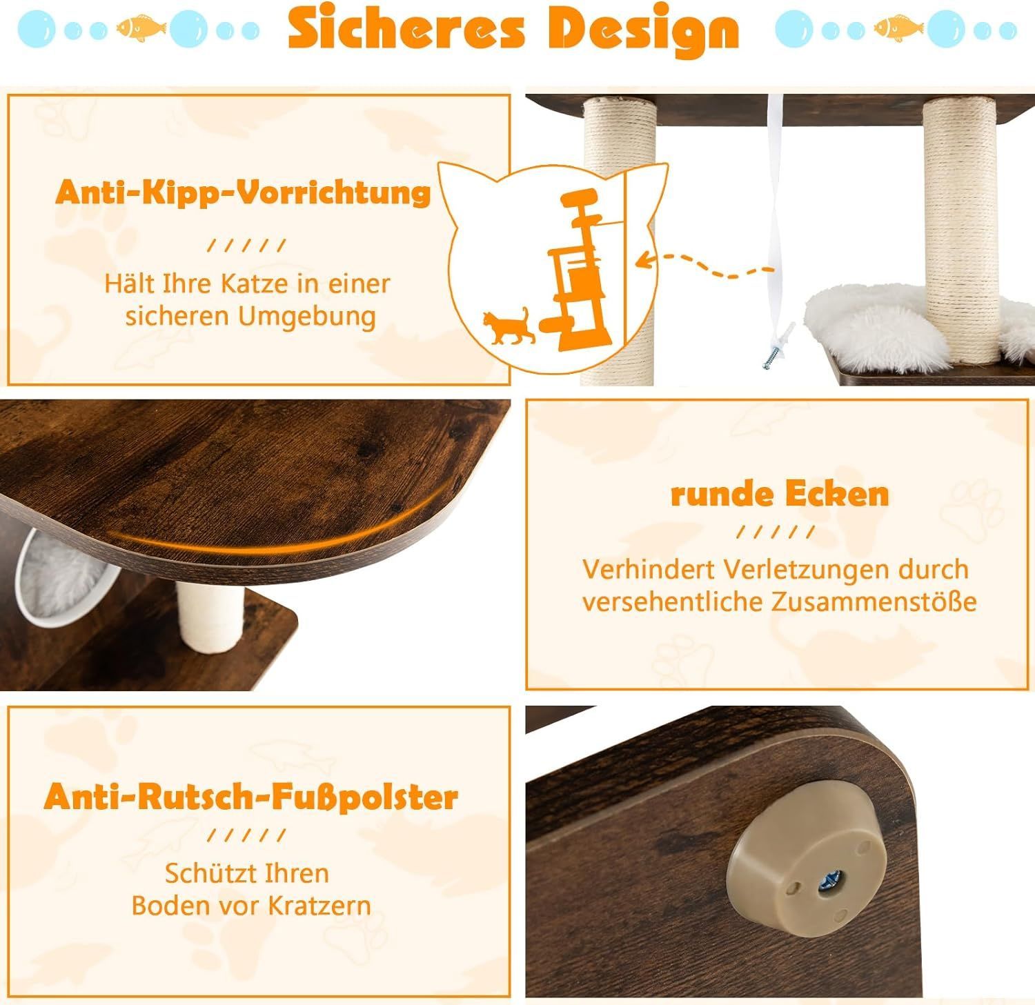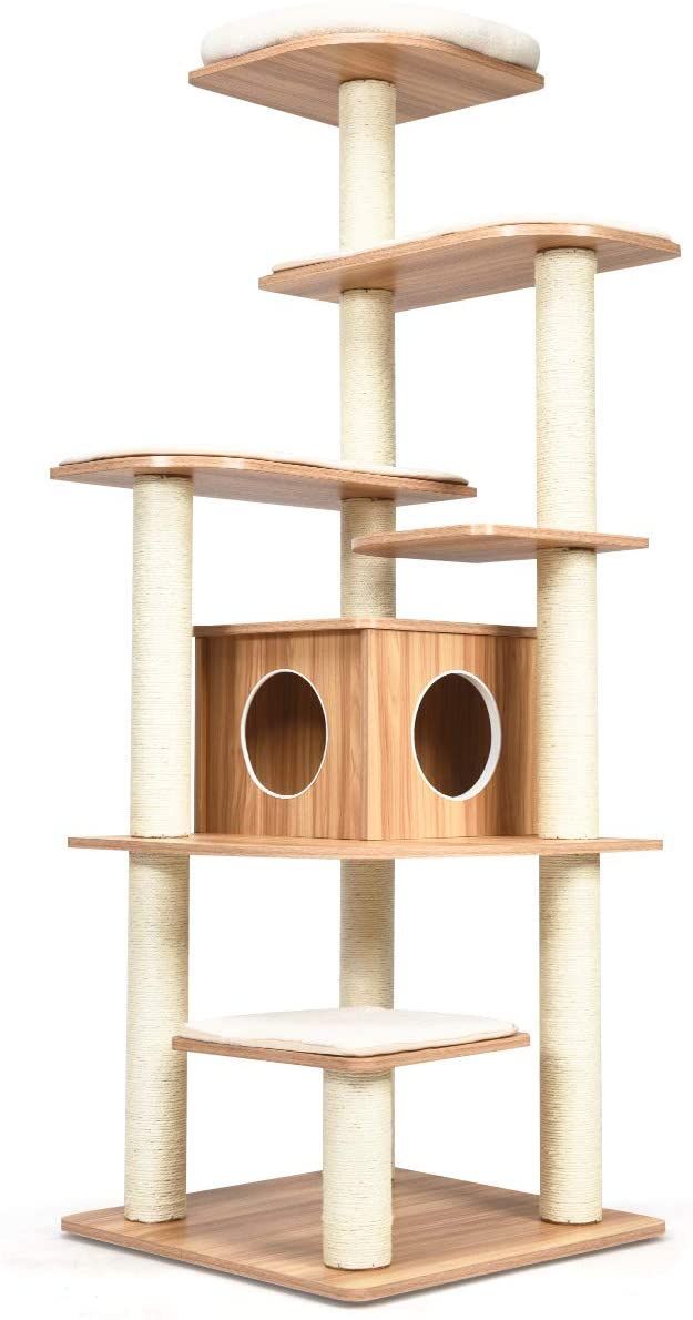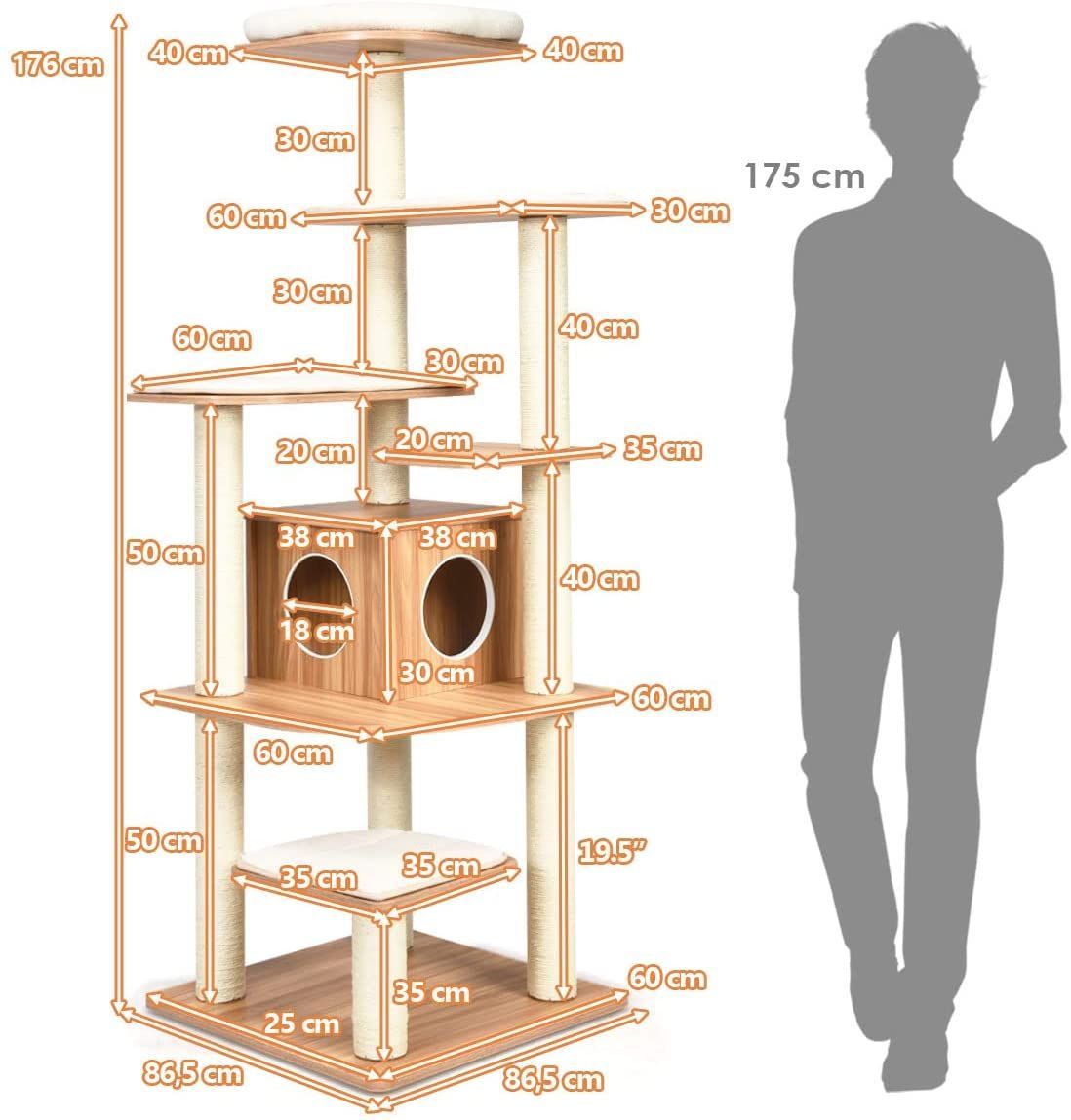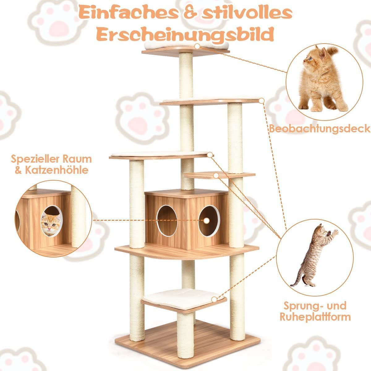 175cm Katzenbaum 6-stufiger Katzenkratzbaum Holz Katzen Kratzbaum Spielhaus mit Höhle