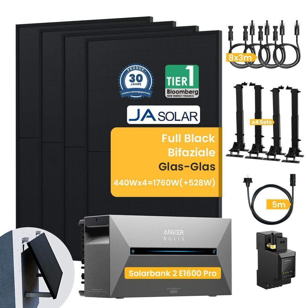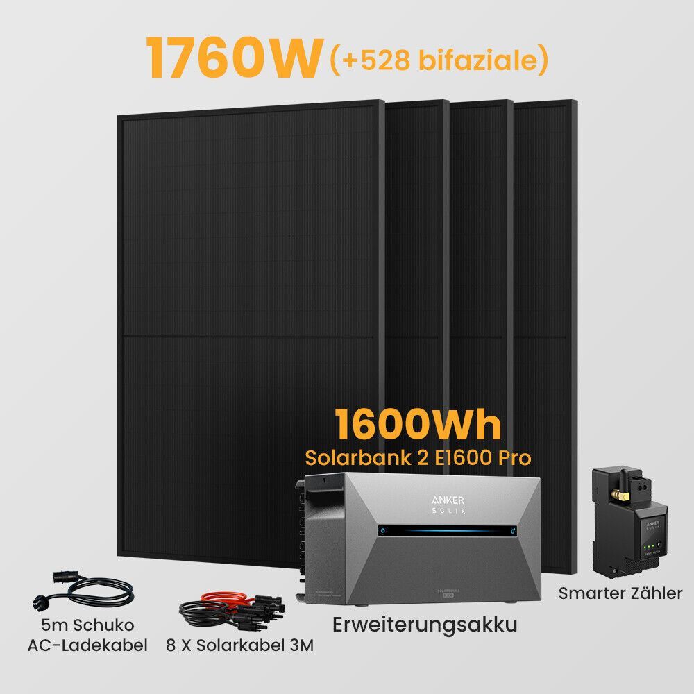 1760W Bifazial Balkonkraftwerk mit Anker Solarbank 2 E1600 Pro 1600Wh Speicher