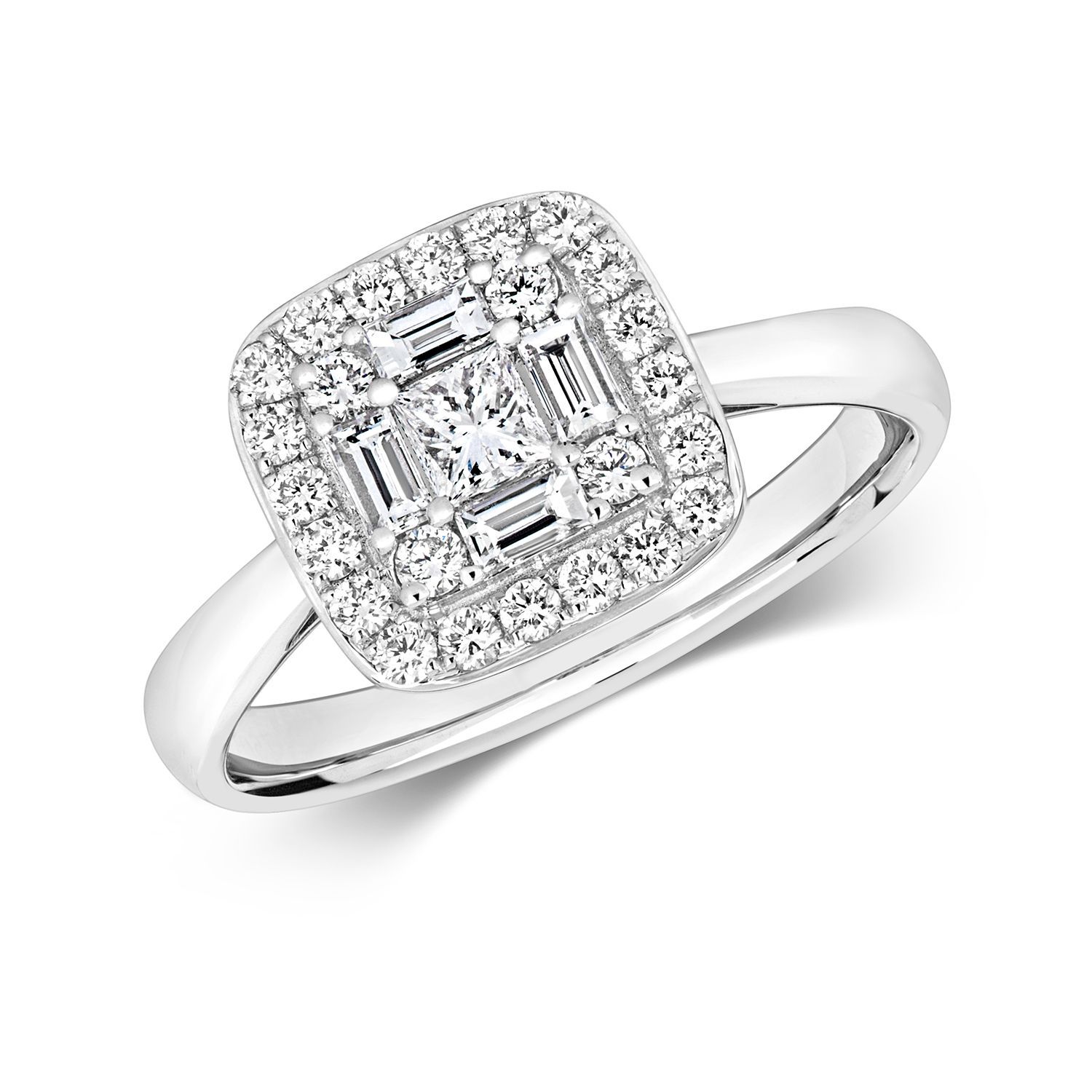18 ct/Karat Weißgold Cluster Diamant Solitärring Baguette-Schliff 0.70 Karat HI - SI