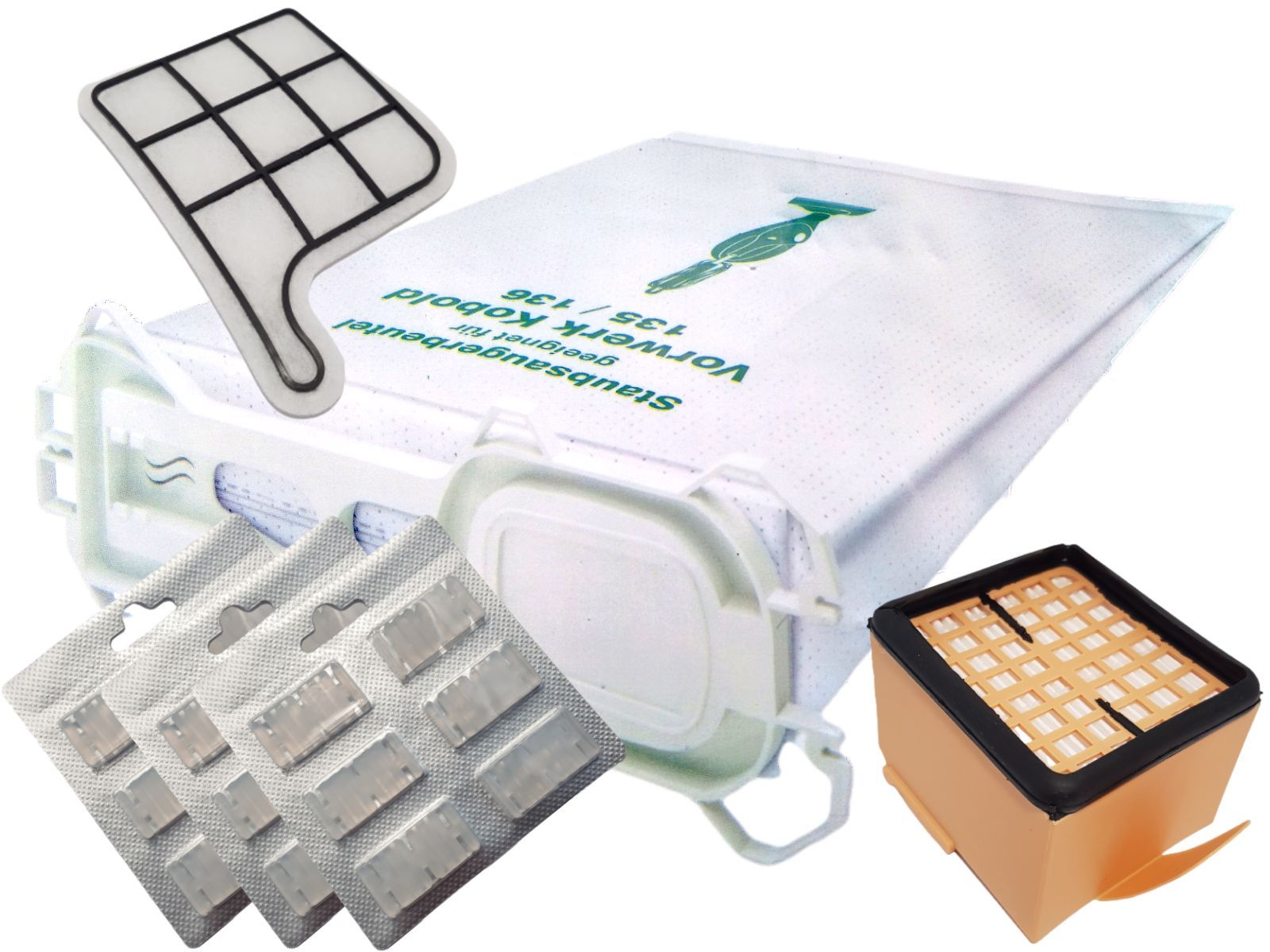 Euro Show Menu zum Shop 18 Staubsaugerbeutel Vlies geeignet Vorwerk Kobold 135 136 + Filterset + 18 Duft Beschreibung Qualität muss nicht teuer sein! 1 A Ware. Neu und absolut passgenau. 18 Staubsaugertüten aus hochwertigem Microvlies mit Kunststoff-Flansch. 5-lagig. Geeignet für den Vorwerk Kobold