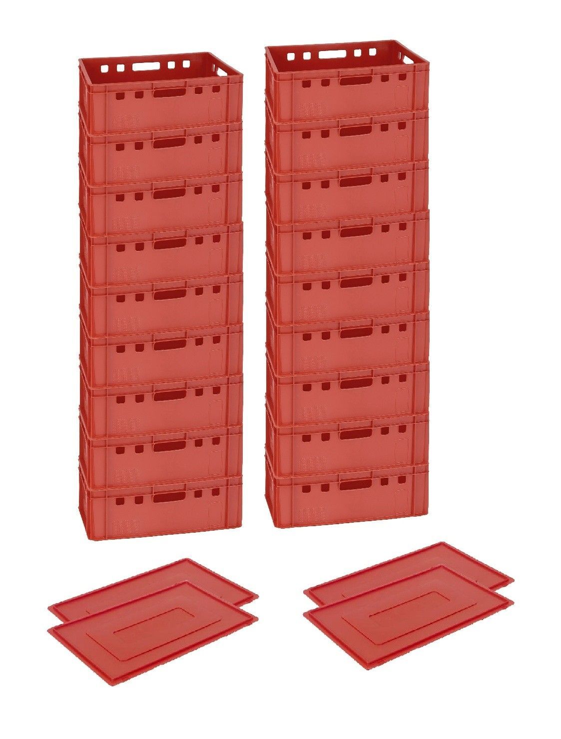 18 Stk Metzgerkisten Aufbewahrungsbox E2 Stapelbox 60x40x20 cm rot + 4 Abdeckungen