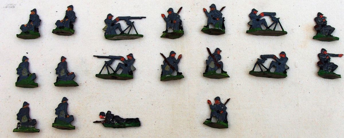 18 Zinnfiguren Französische Infanterie - schwere MG-Abteilung im Stahlhelm