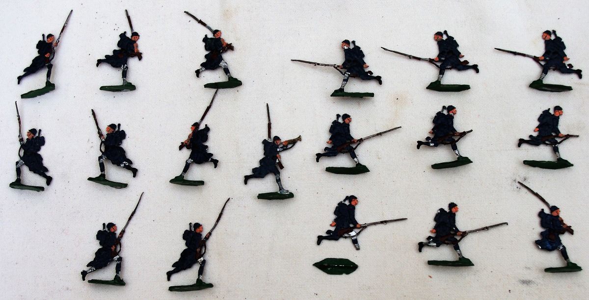 18 Zinnfiguren Französische Infanterie - sturmlaufende Fußgänger im Stahlhelm