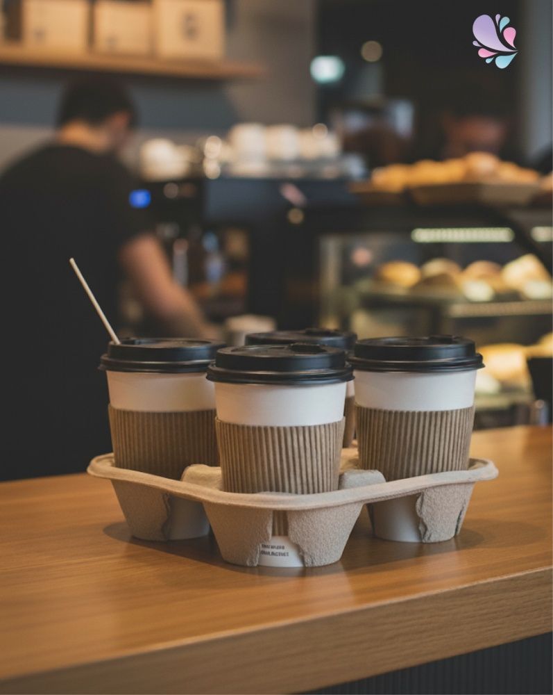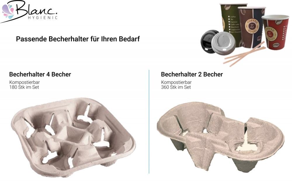180 Becherhalter, praktische & kompostierbare Chinet-Transporthilfe für 4 Becher, 21