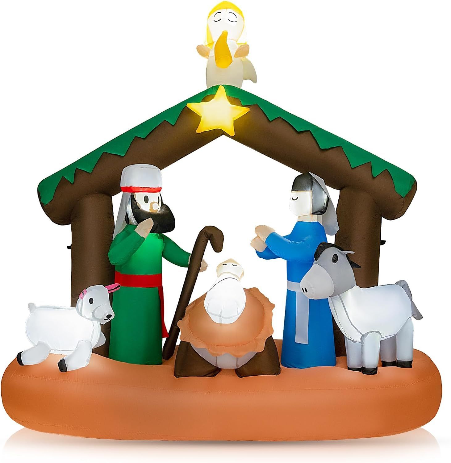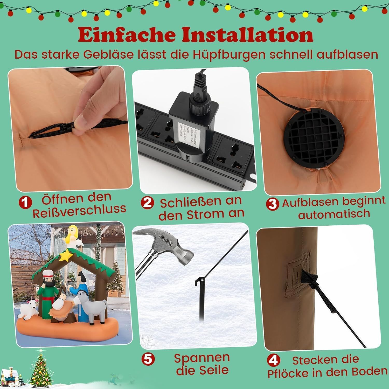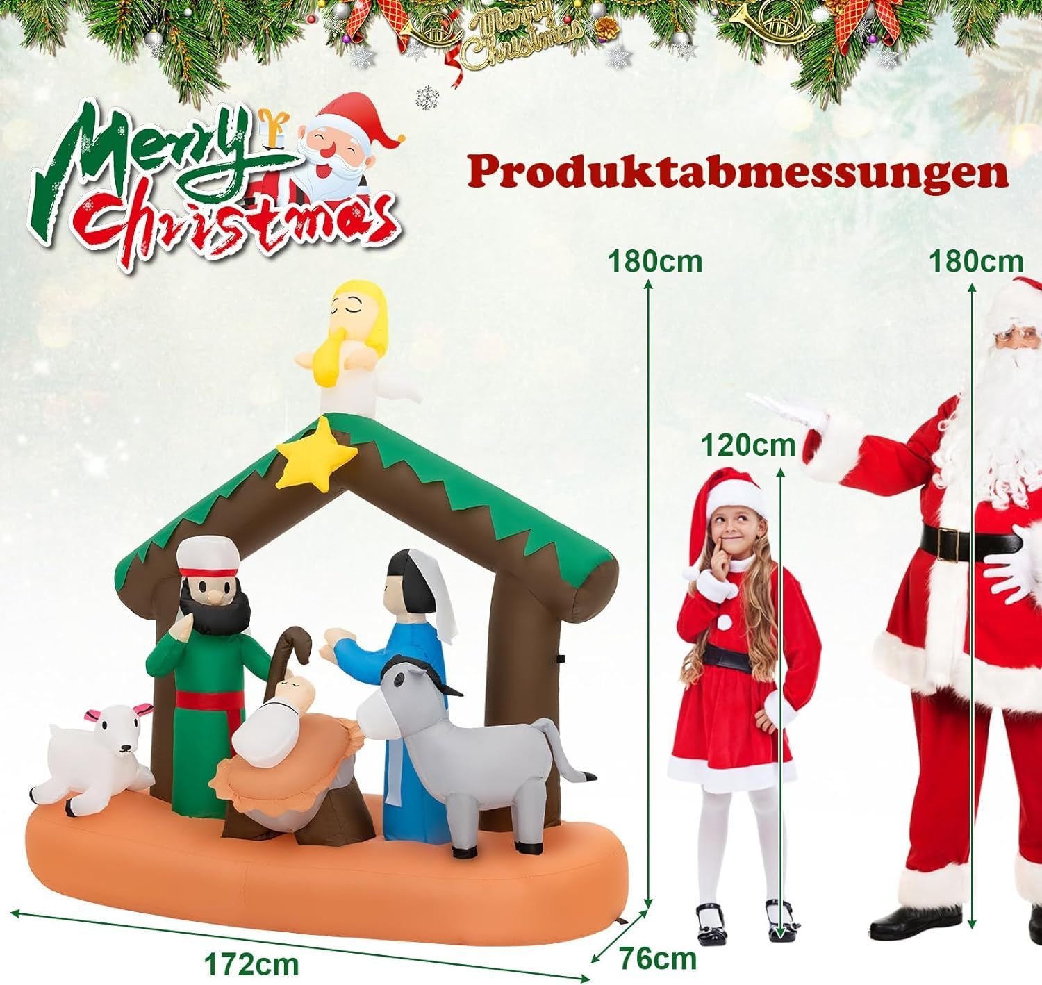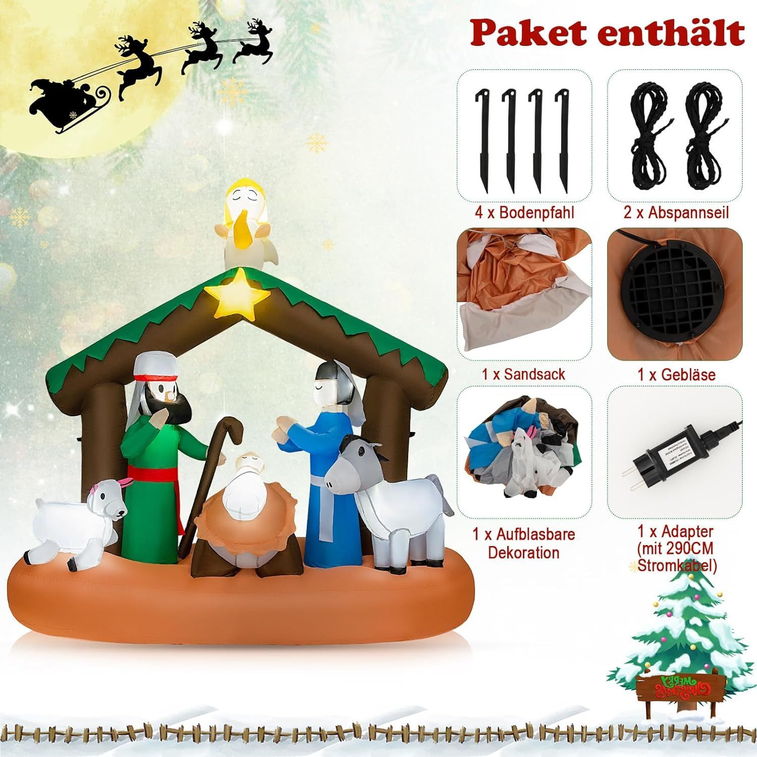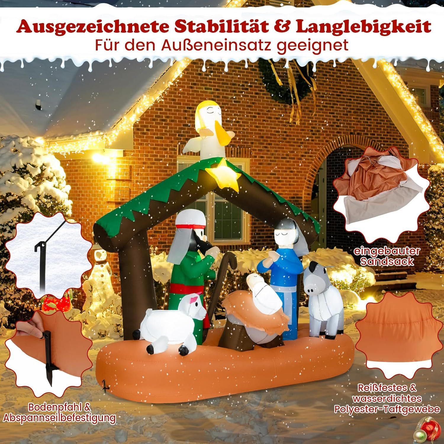 180 cm Aufblasbare Weihnachtskrippe, Weihnachtsdeko mit LED-Lichter, dekoration
