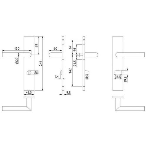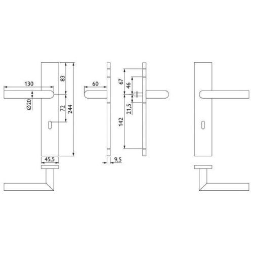 • Hoppe Türdrücker New York Kurzschildgarnitur BB/PZ/WC Alu F1 Türgriff Türklinke
