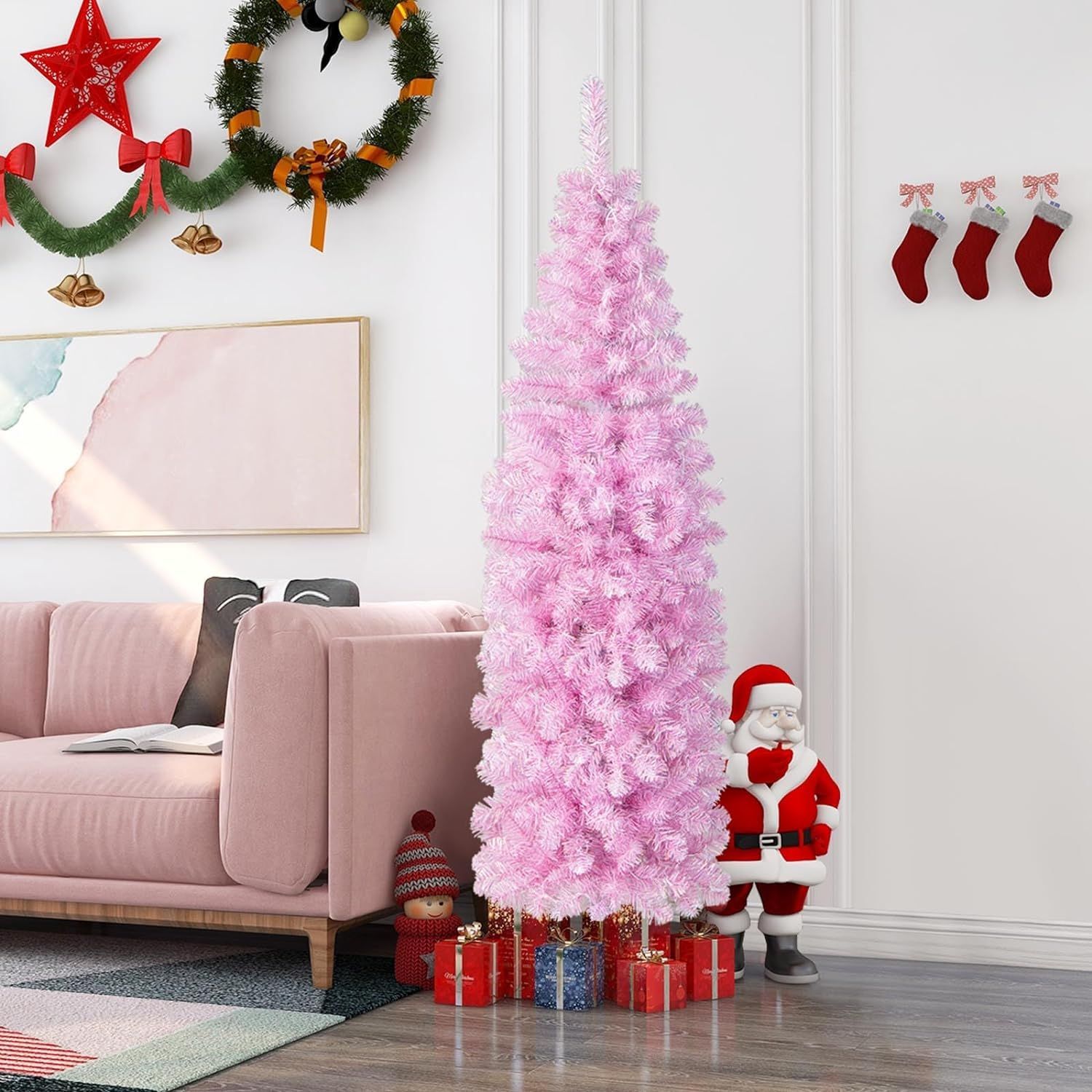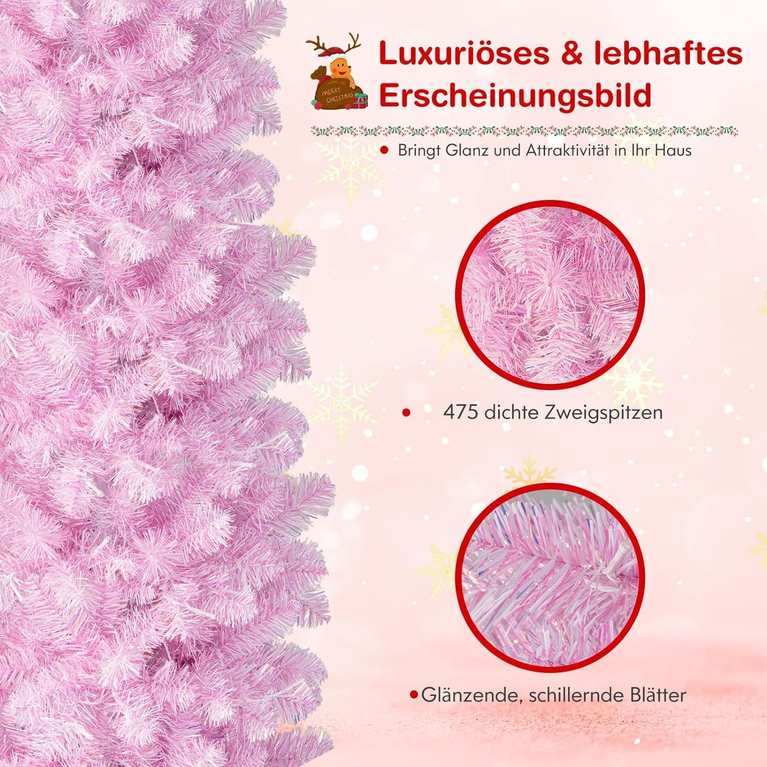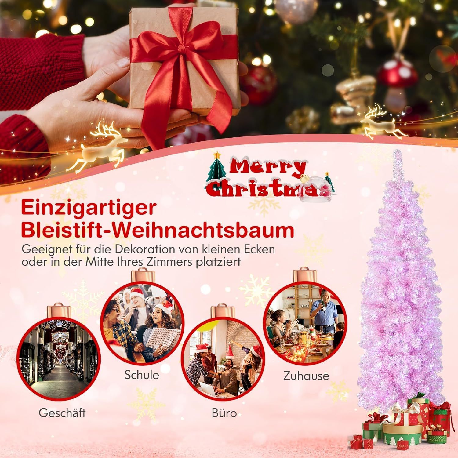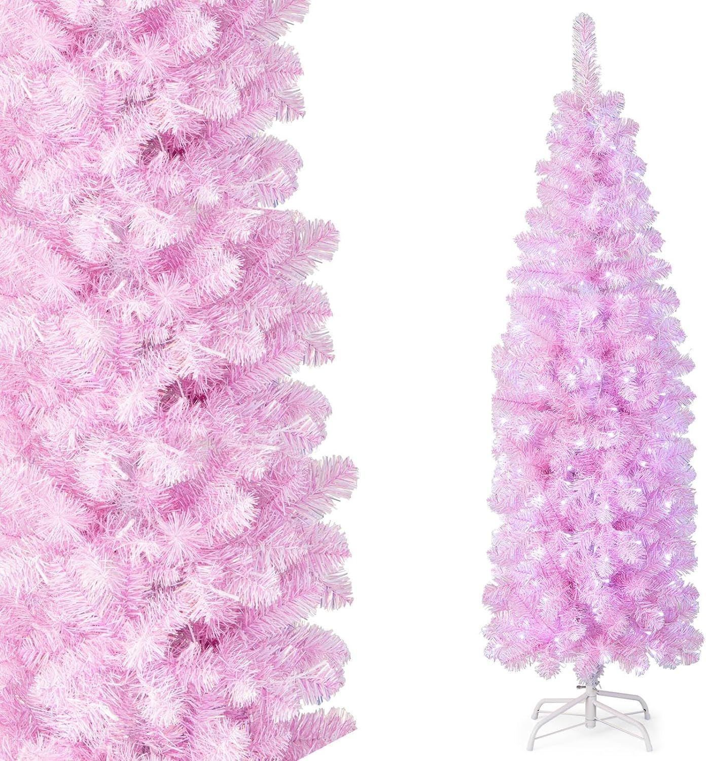 180cm Künstlicher Weihnachtsbaum Bleistift, LED beleuchteter Tannenbaum mit 250 LEDs