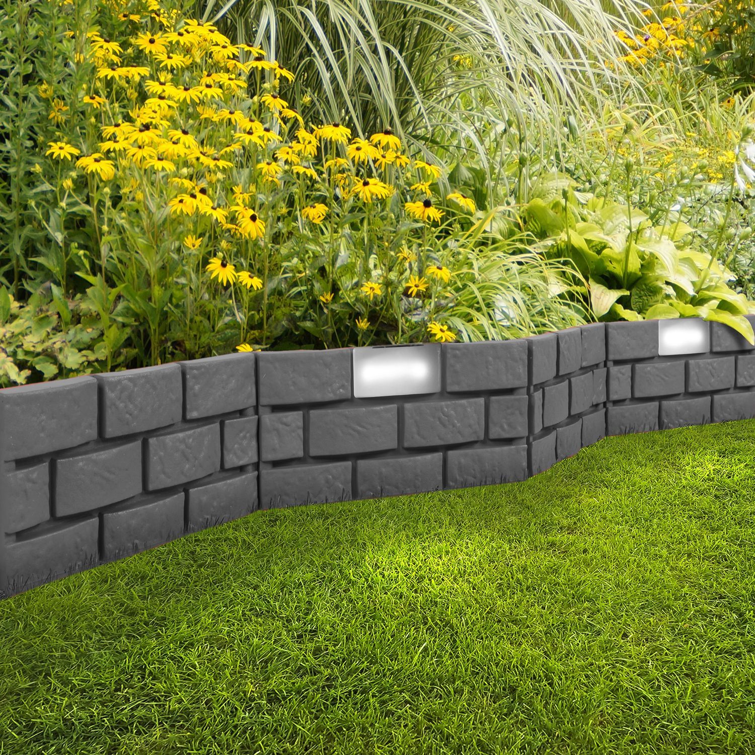 180cm LED beleuchtete Solar Beeteinfassung 4 Stk 45cmx29cm Beetumrandung Grau