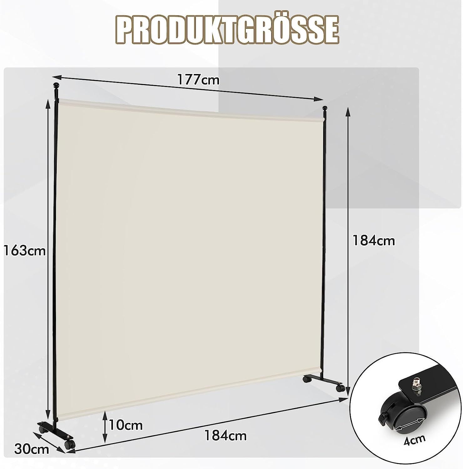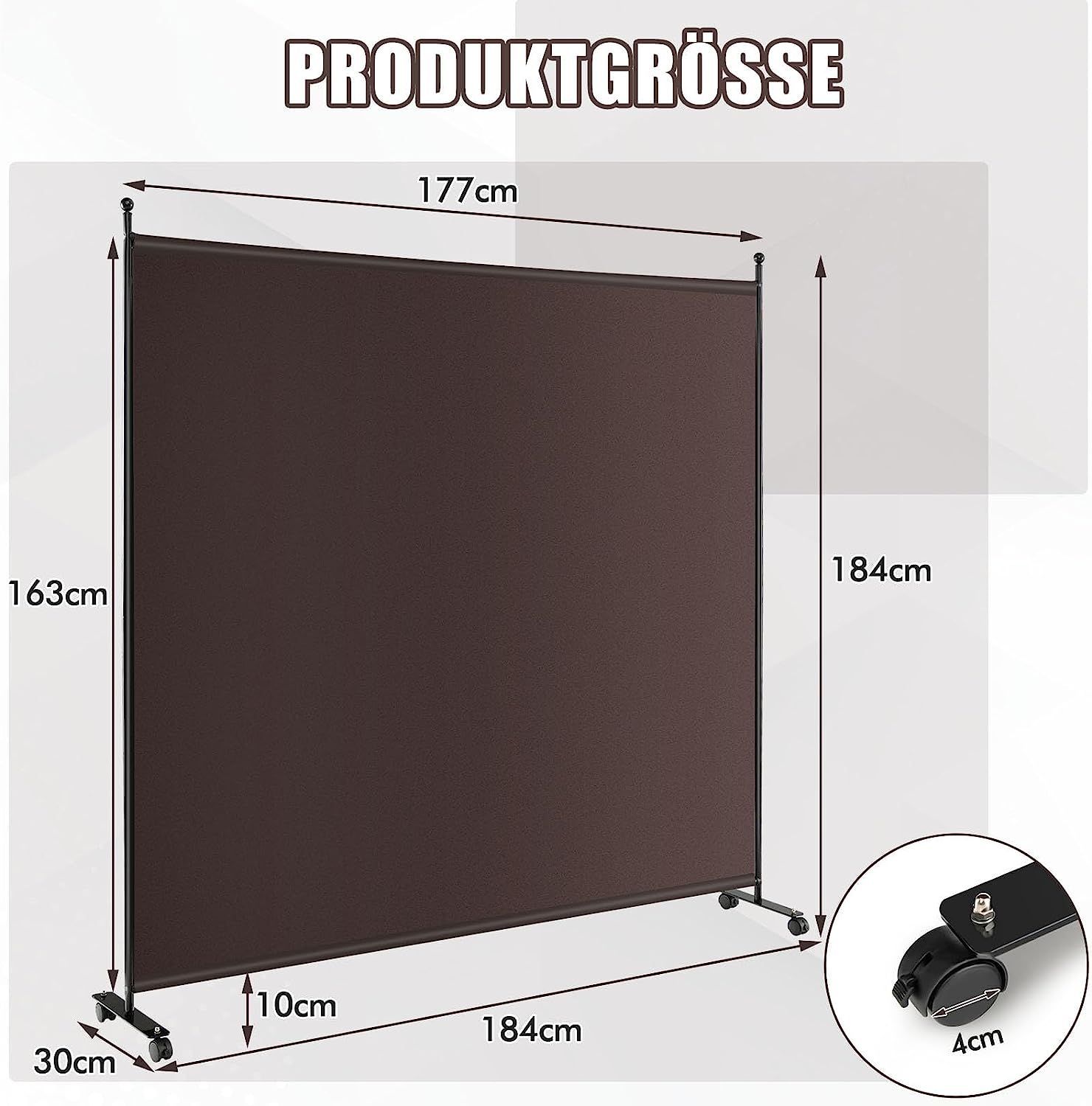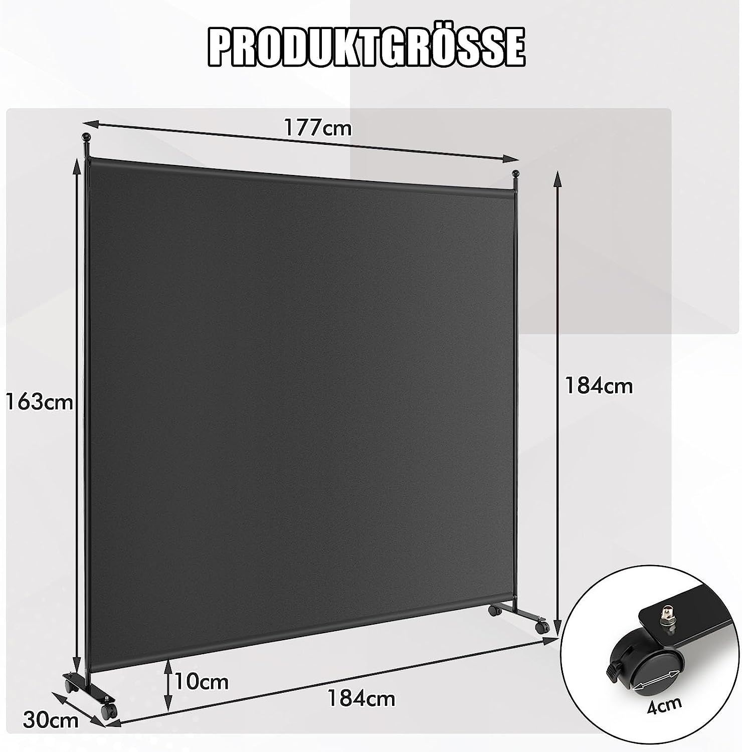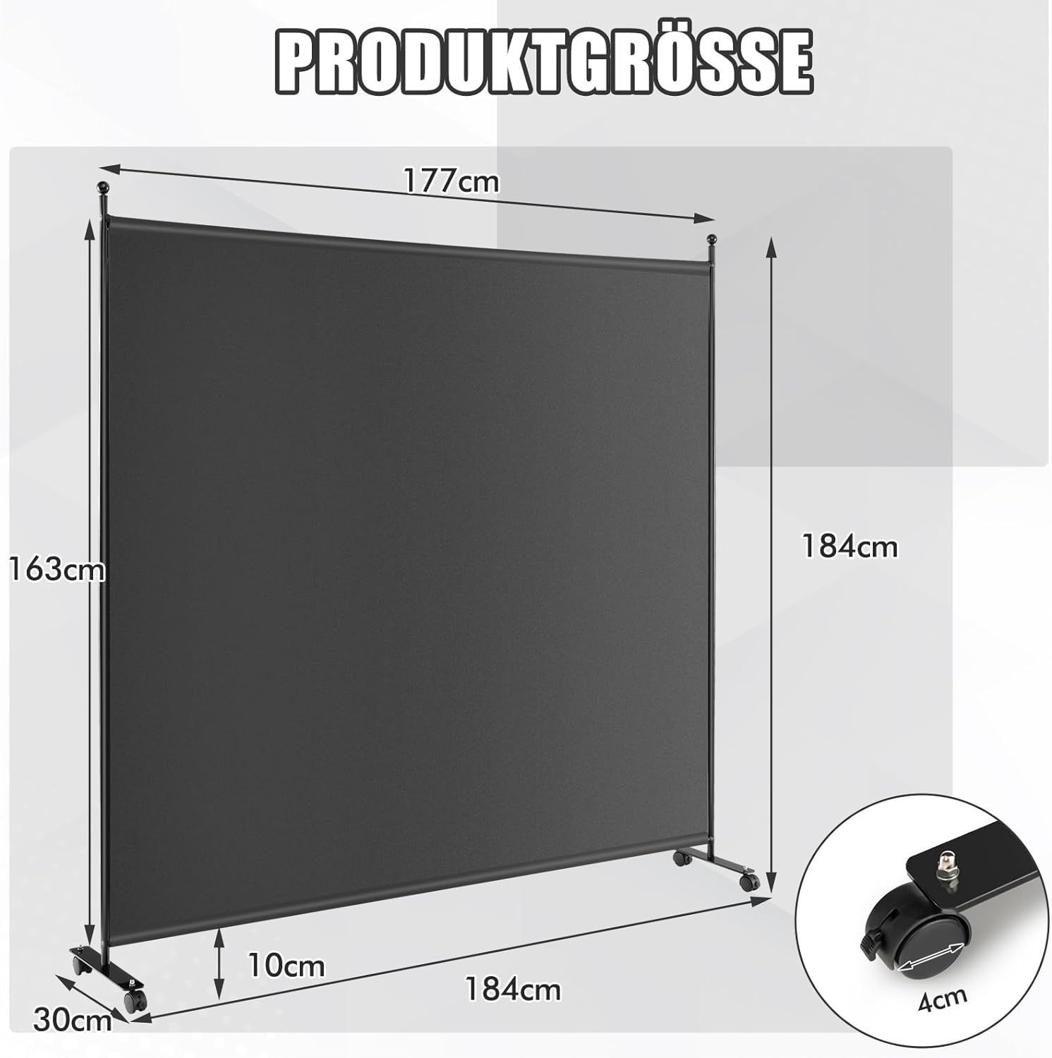 184 x 184cm Raumteiler auf Rollen, Paravent mit einem Panel, Trennwand faltbar