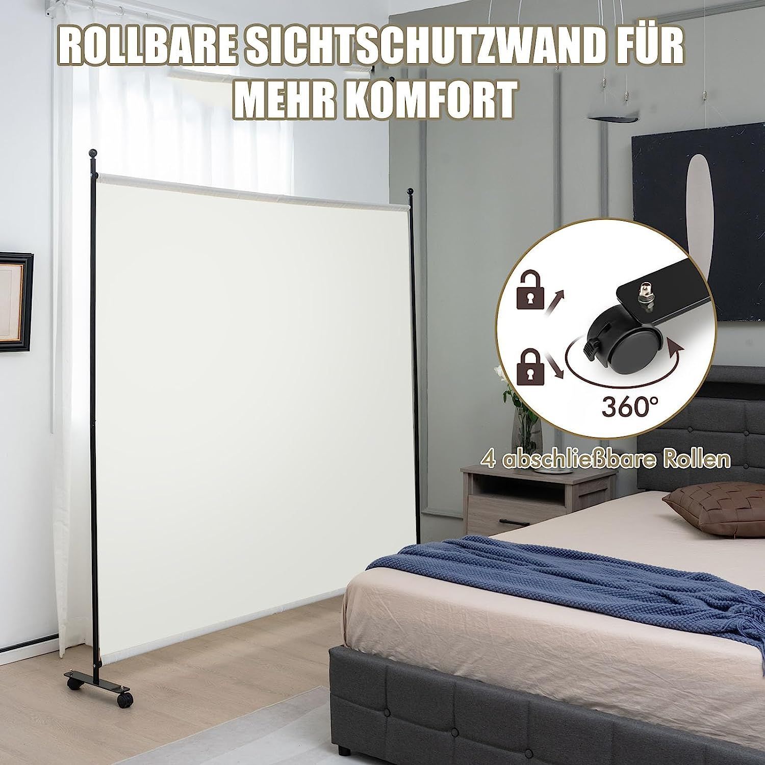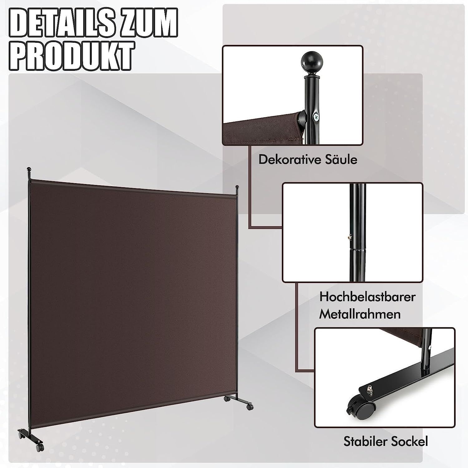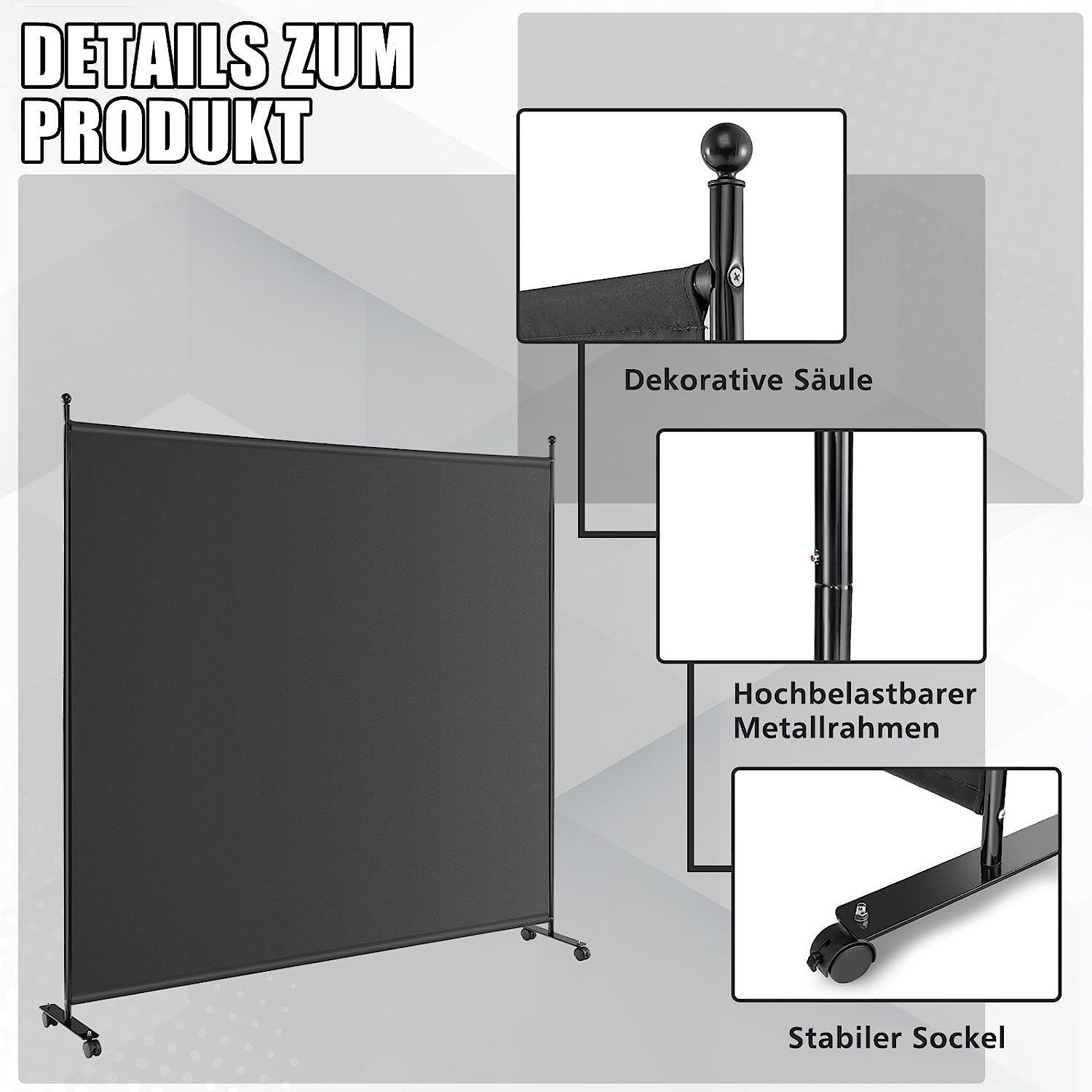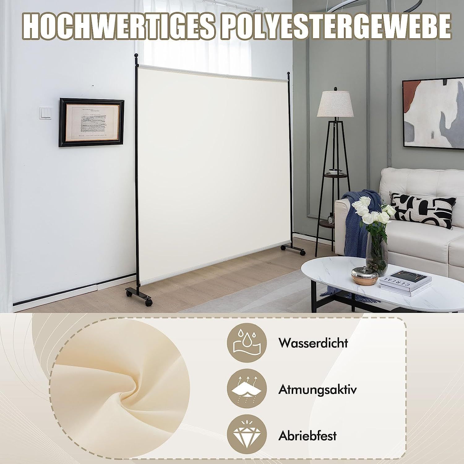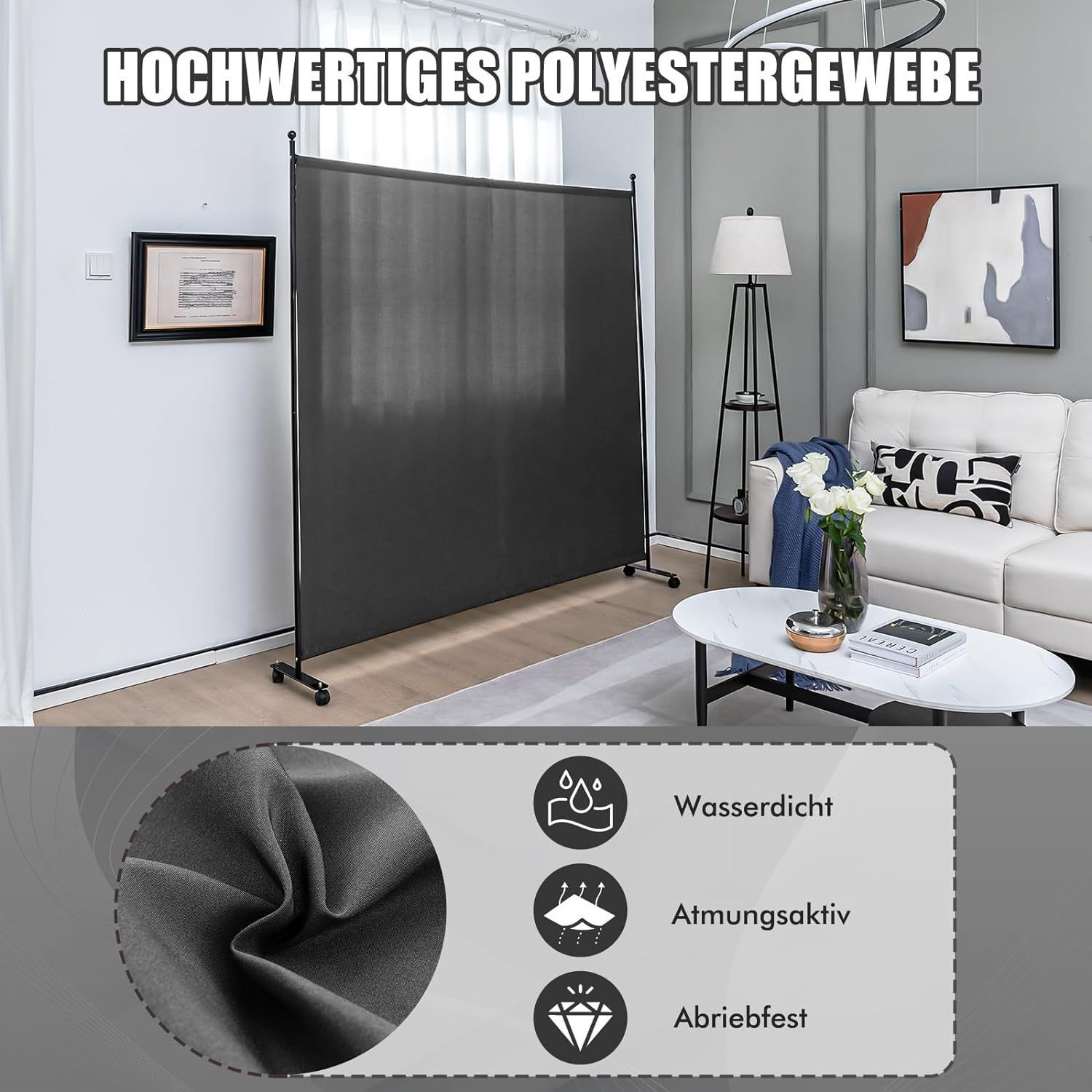 184 x 184cm Raumteiler auf Rollen, Paravent mit einem Panel, Trennwand faltbar
