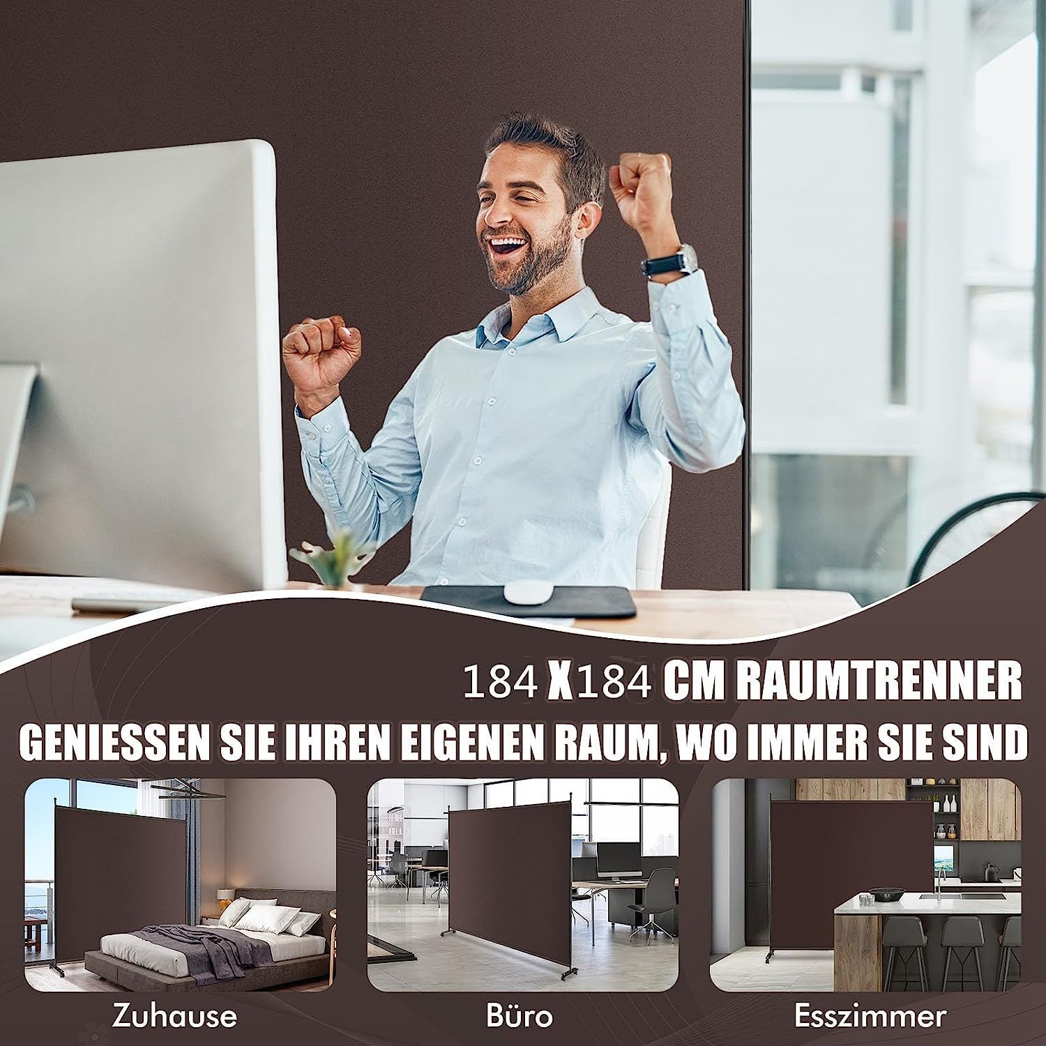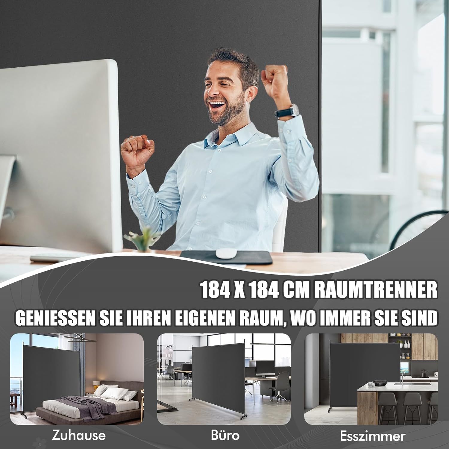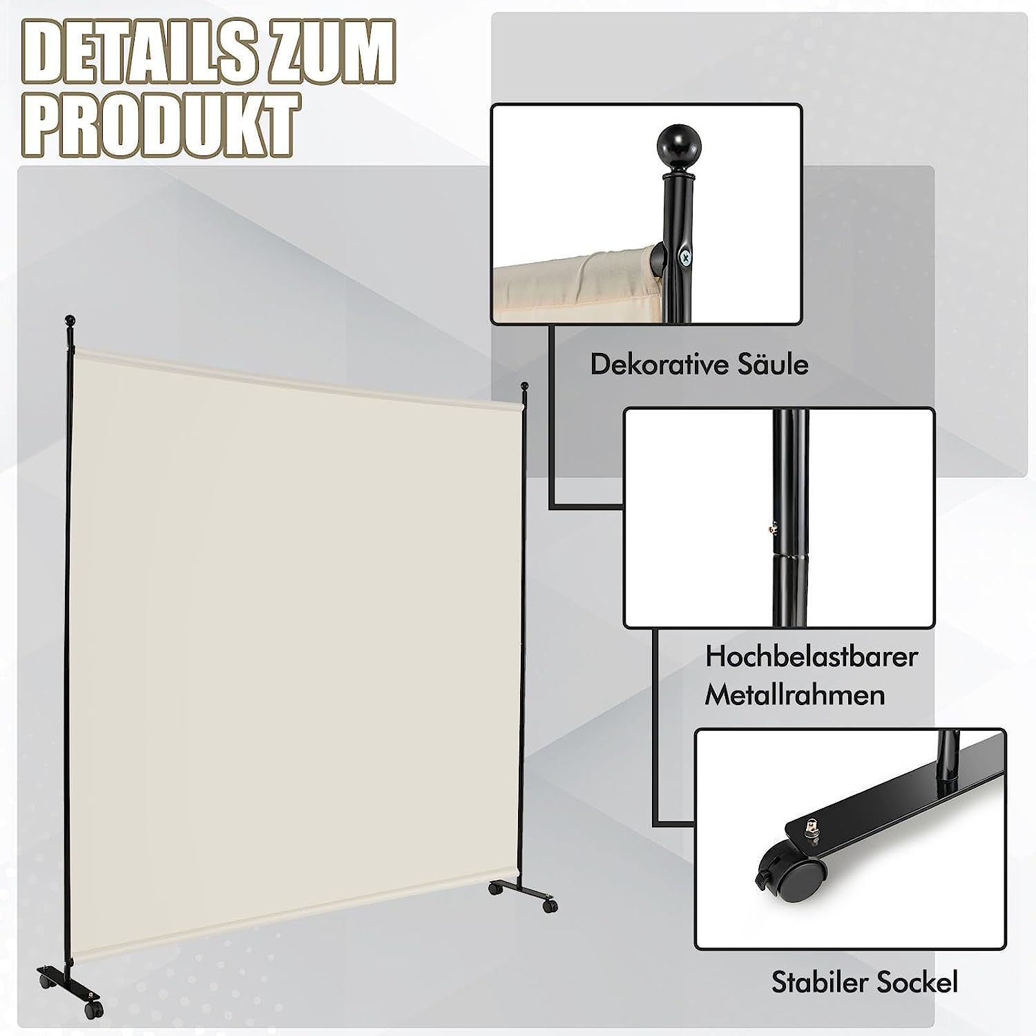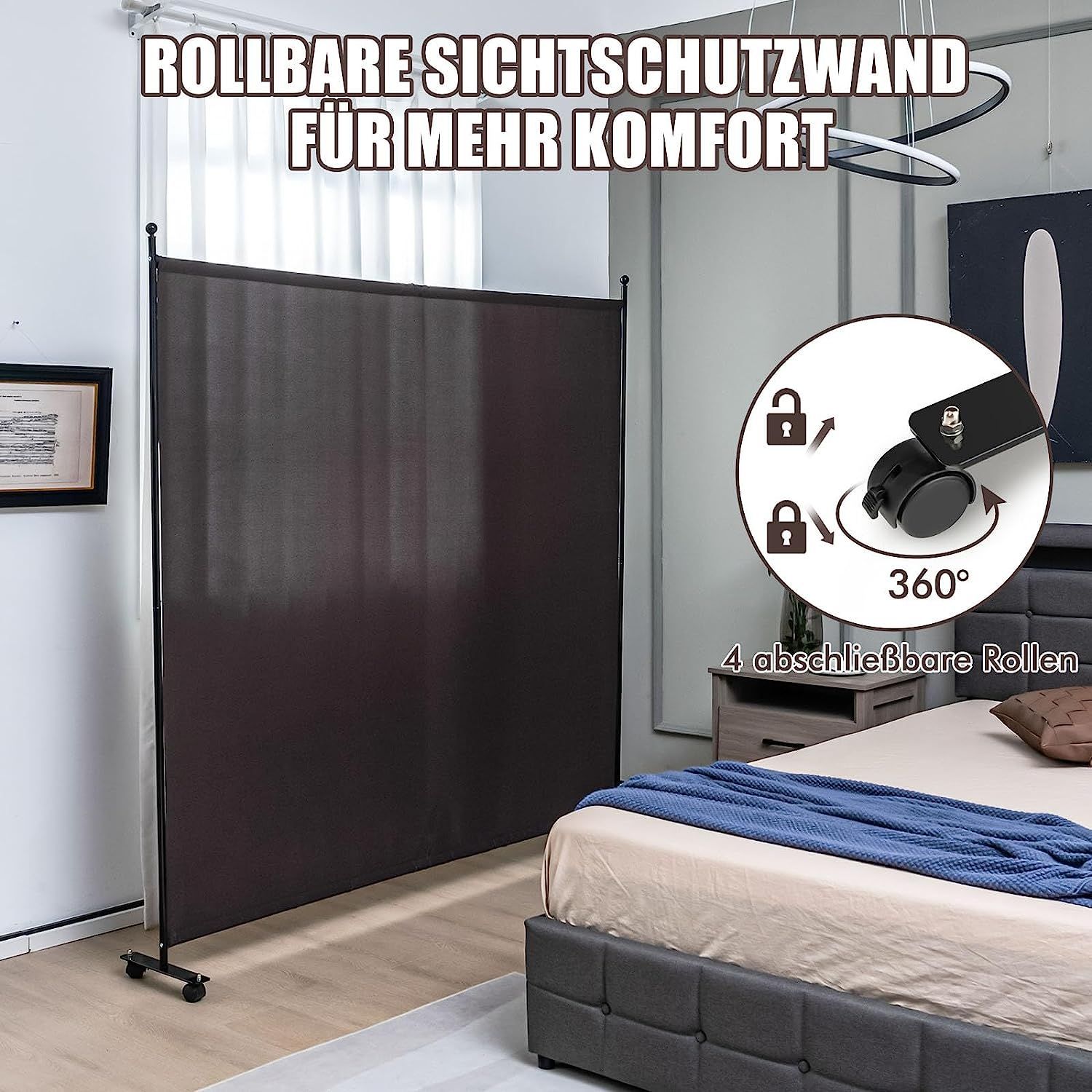 184 x 184cm Raumteiler auf Rollen, Paravent mit einem Panel, Trennwand faltbar