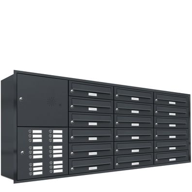 • 18er Premium Briefkasten Unterputz Anthrazit mit Klingel 18 Fach Postkasten 3x6