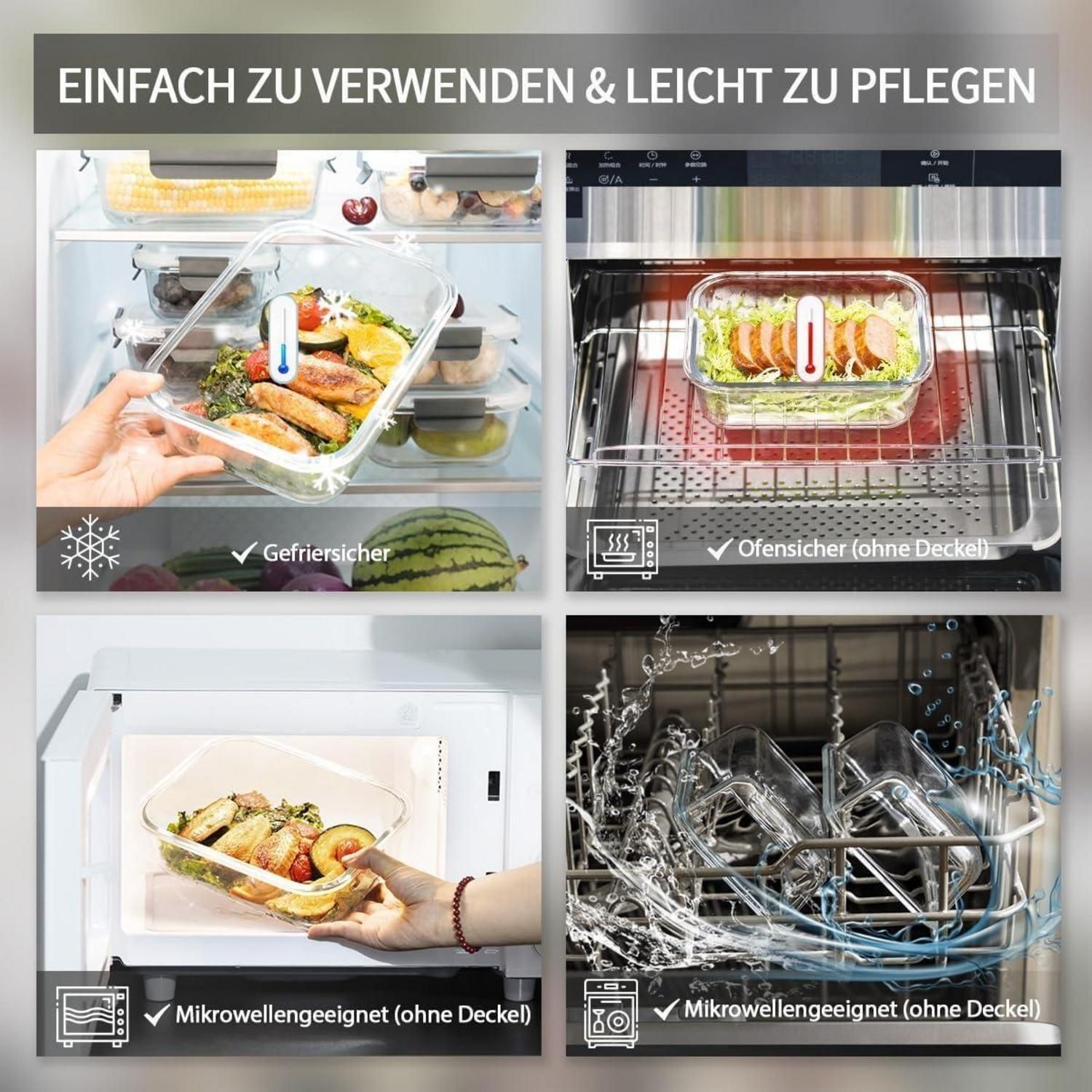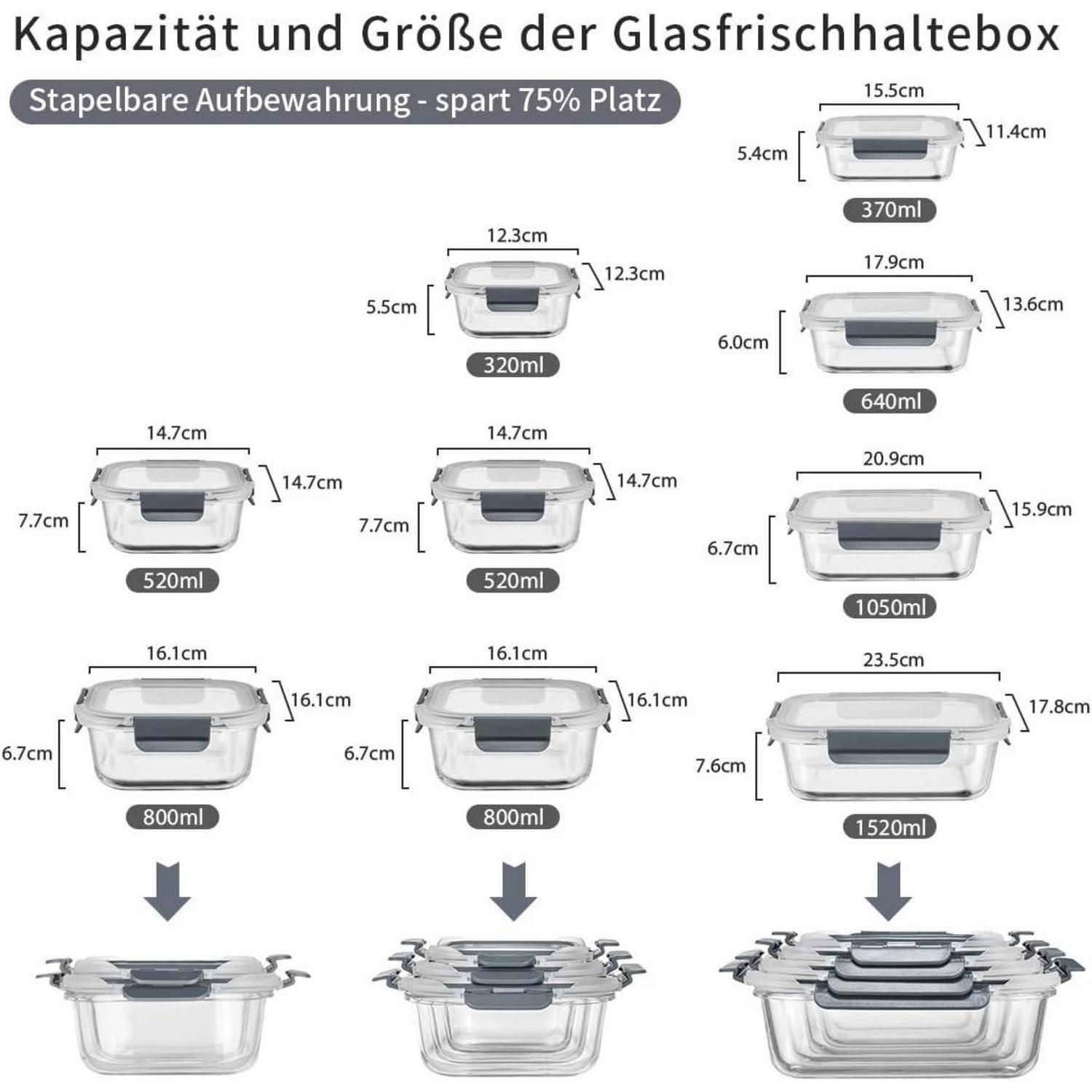 18tlg Glas-Frischhaltedosen Set Meal Prep Box Behälter auslaufsicher BPA-frei