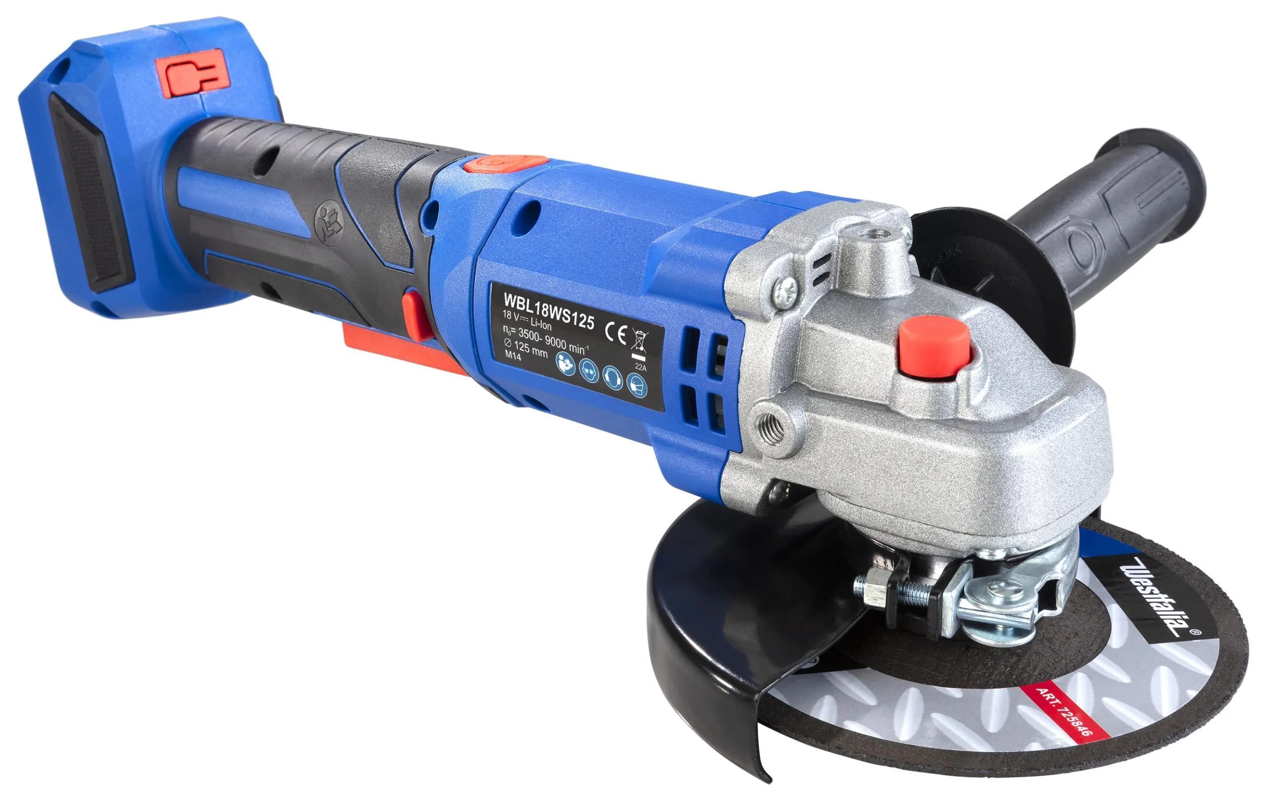 WESTFALIA 18V Winkelschleifer BL 125 mm WWSBL 125 variabel 3500-9000 U/min 125 mm Scheibe