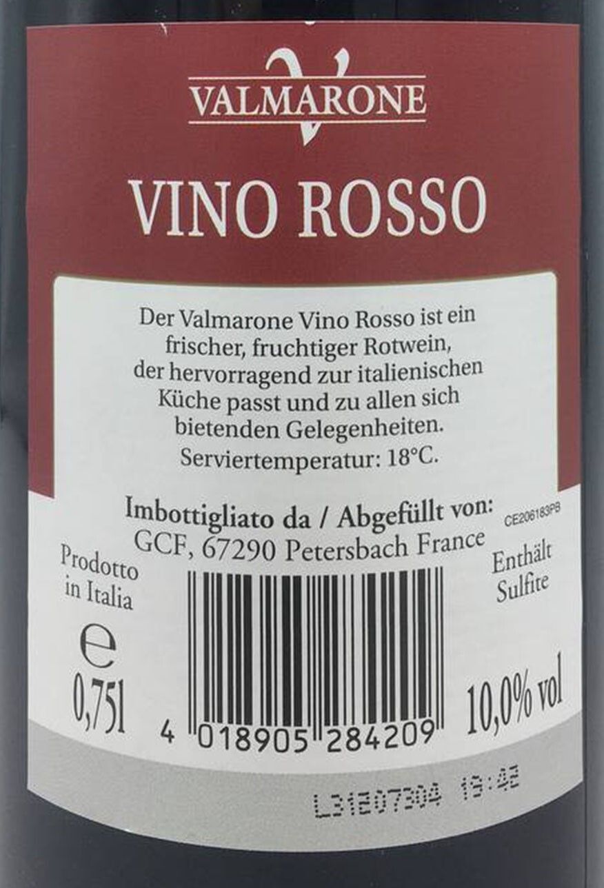 18x Valmarone Vino Rosso Rotwein aus Italien 10% - 0,75L
