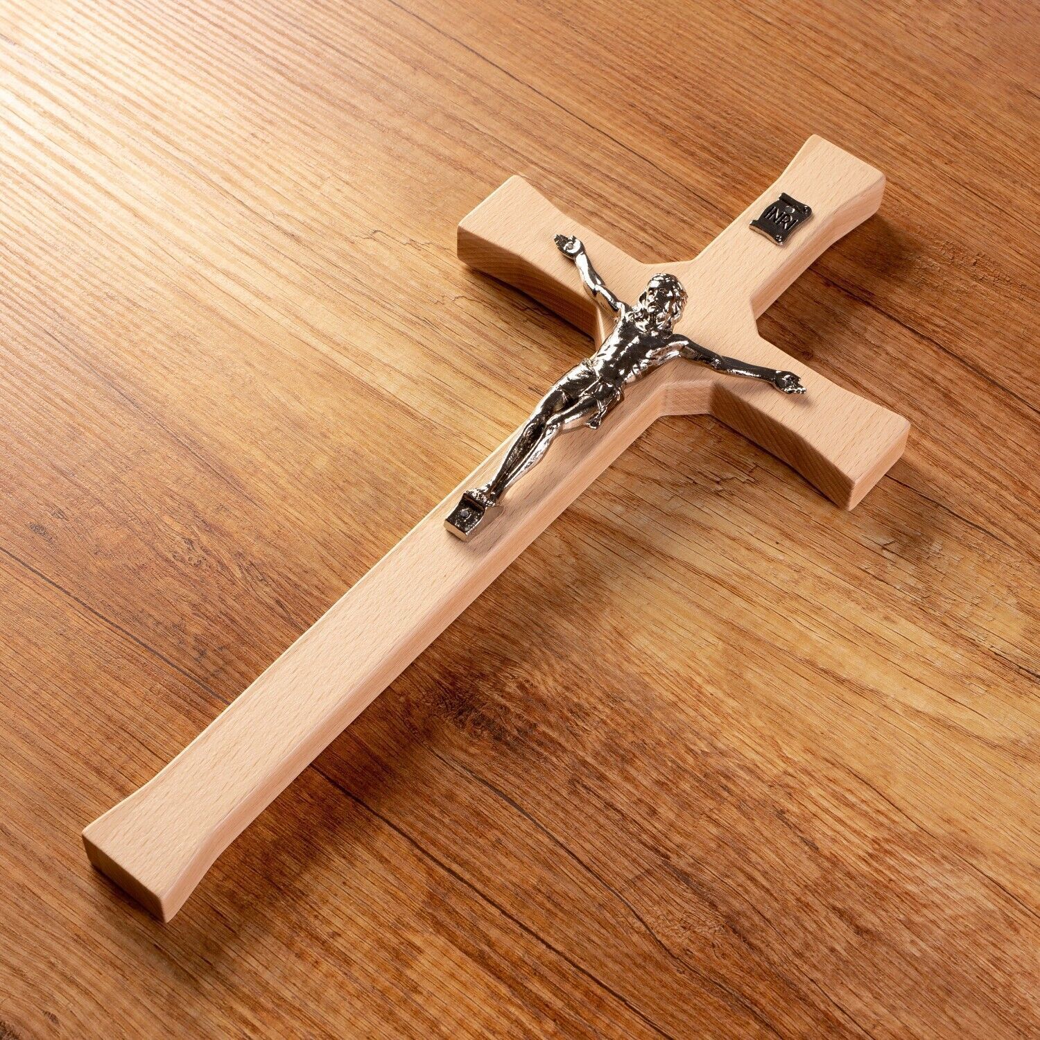 18x8 cm Christus Kruzifix Kreuz aus Buchenholz Naturstreifen im klassischen Stil