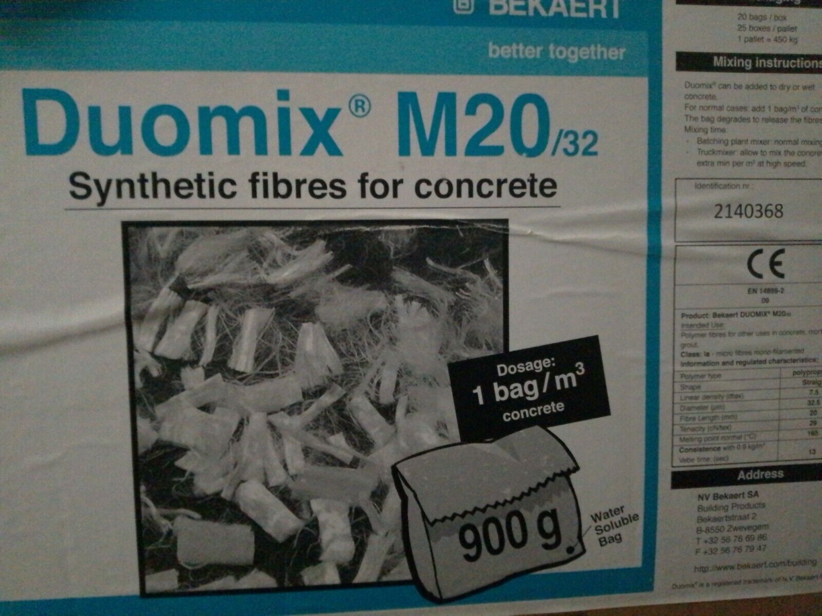 Bekaert Polypropylenfaser Duomix M20 DUOMIX M20 Der Standart für die Begrenzung von plastischen Schwindrissen Duomix Synthetikfasern verringern die plastische Schwindrissbildung sowie das Ausbluten des Betons. Materialeigenschaften Rohmaterial: Reines Polypropylen, Monofilament Nennwerte Zugfestigke