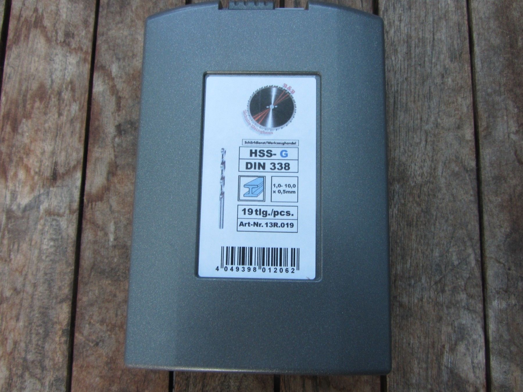 Bohrer Satz in Rose-Plastik Kasette Art. Nr. 13R.019 ITG Bezeichnung 19 teilig HSS-R DIN 338 geschliffen 1,0mm bis 10,0mm x0,5mm Aufsteigend in 0,5mm Schritten HSS DIN 338 rollgewalzt,135 Grad Kreuzanschliff Zum Bohren von Stahl