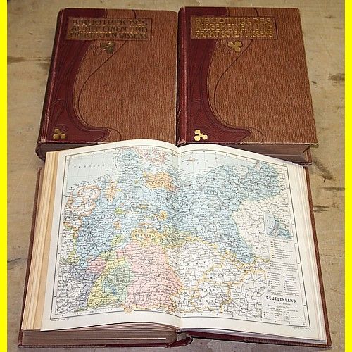 1905 Bibliothek des Allgemeinen und Praktischen Wissens 1. + 2.+ 5. Band incl. Atlas