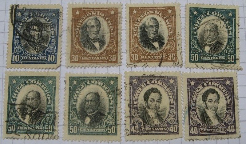 1911-1929, Chile, stamp series: Presidents and Celebrities (8 stamps)