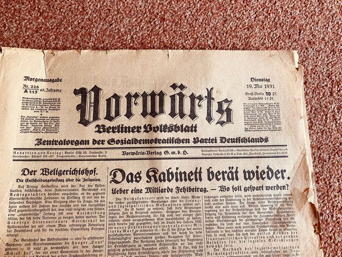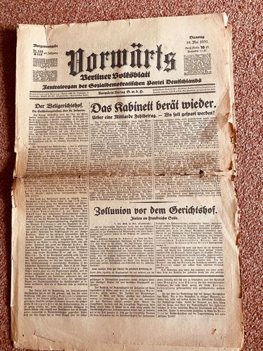 1931 Vorwärts Berliner Volksblatt Sozialdemokraten original Zeitung