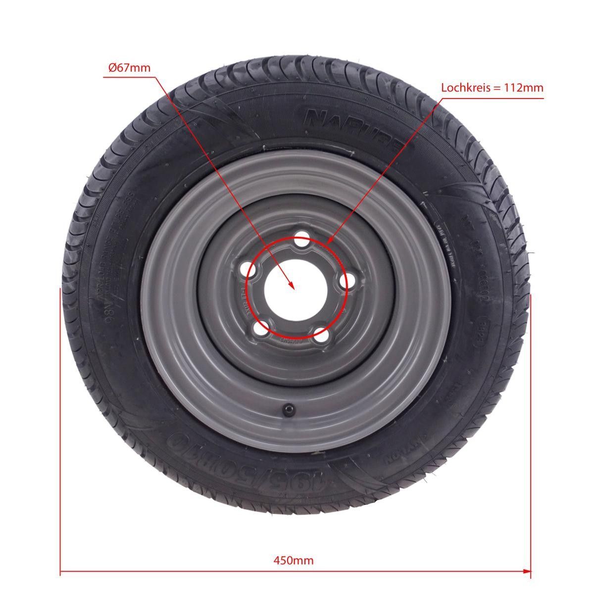 195/50 B10 Komplettrad 18x8.0-10 Felge 6 x 10 LK 5x112 für PKW Anhänger
