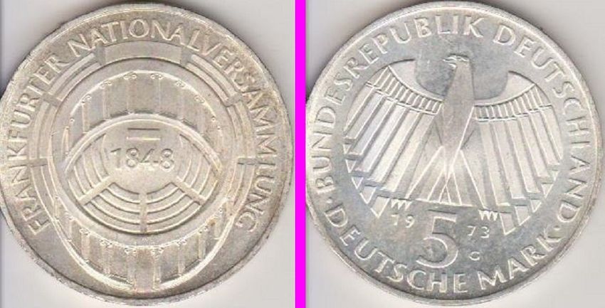 1973 BRD Nationalversammlung 5 DM bankfrisch