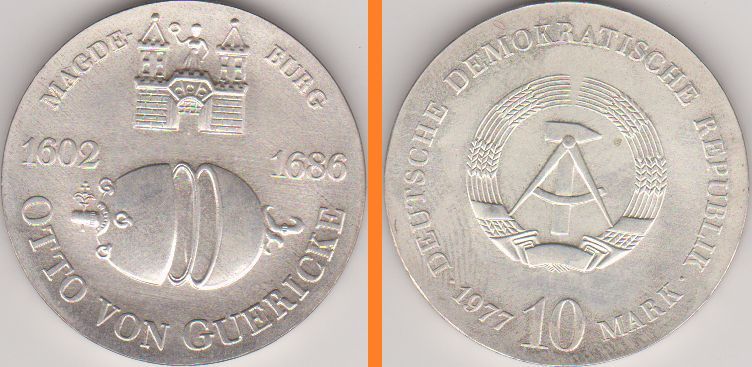 Normal 0 21 false false false DE X-NONE X-NONE 10 Mark 1977 DDR Otto von Guericke ursprüngliche Auflage: 43443 St. Material: Silber Qualität: Stempelglanz