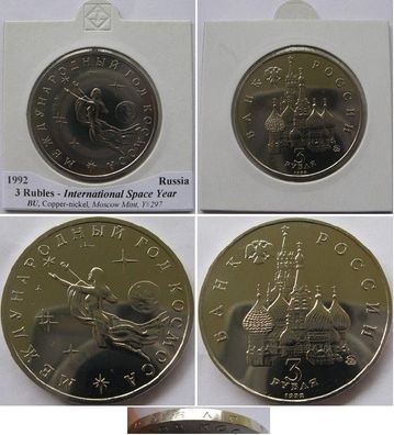 1992, Russia, 3-Ruble commemorative BU-coin: International Space Year