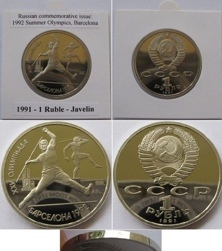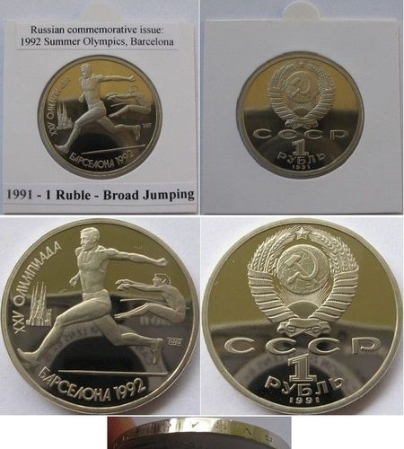 1991-USSR-Set/ commemorative issue-1 Ruble coins-1992 Summer Olympics, Barcelona