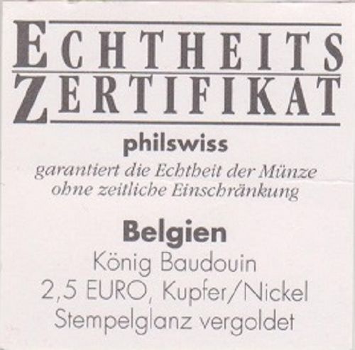 1998 Belgien König Baudouin 2,5 Euro Probe mit Briefmarke