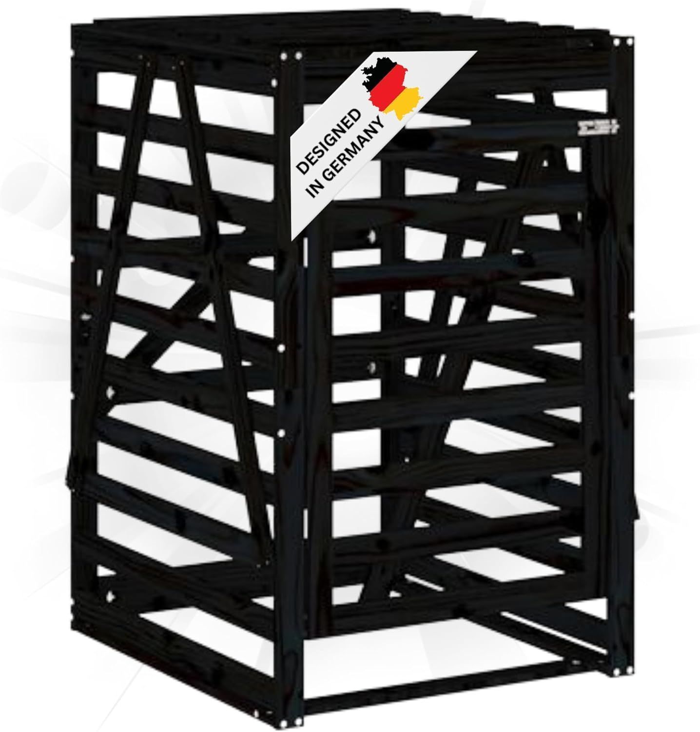 1er Mülltonnenbox Kiefernholz BOUMI 84x90x128,5cm Schwarz Mülltonnenverkleidung für 1