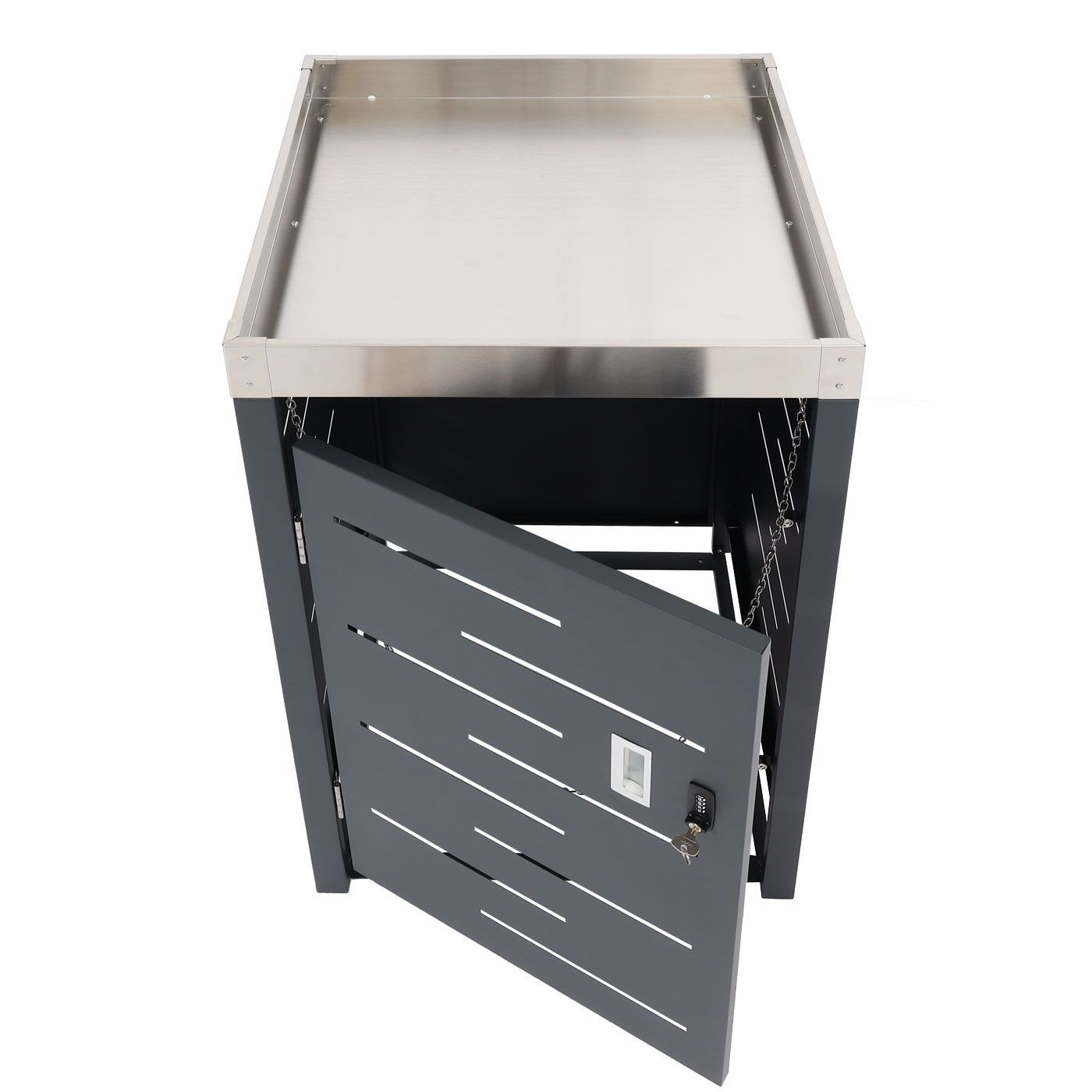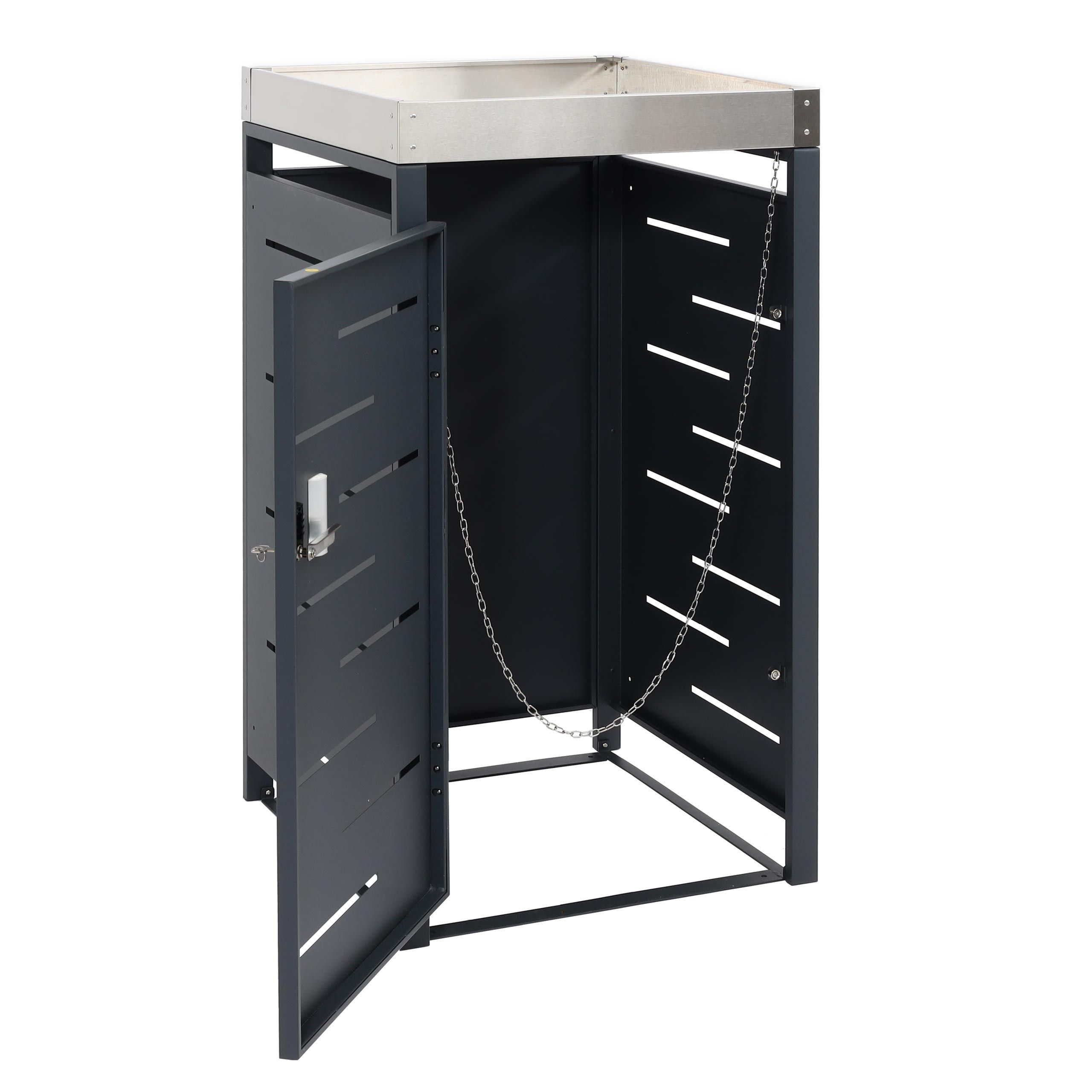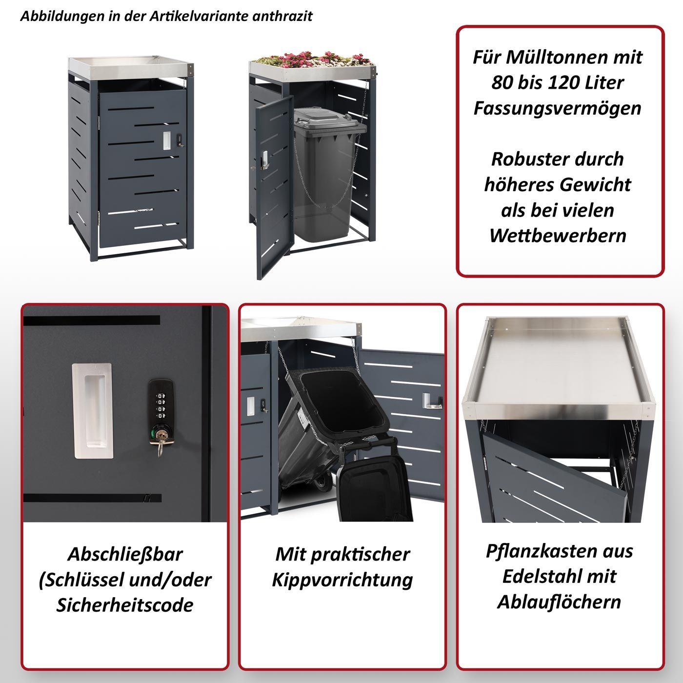 Mendler 1er-Mülltonnenverkleidung HWC-H40b, Pflanzkasten Edelstahl-Metall-Kombi 24kg