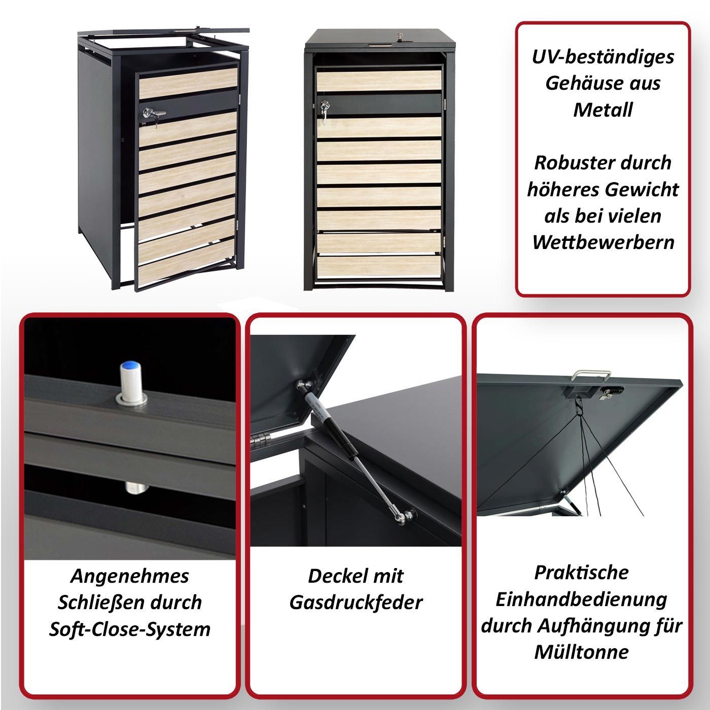 Mendler 1er Mülltonnenverkleidung HWC-J81, Mülltonnenbox, erweiterbar, Metall, anthrazit