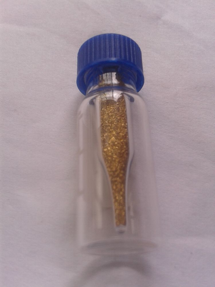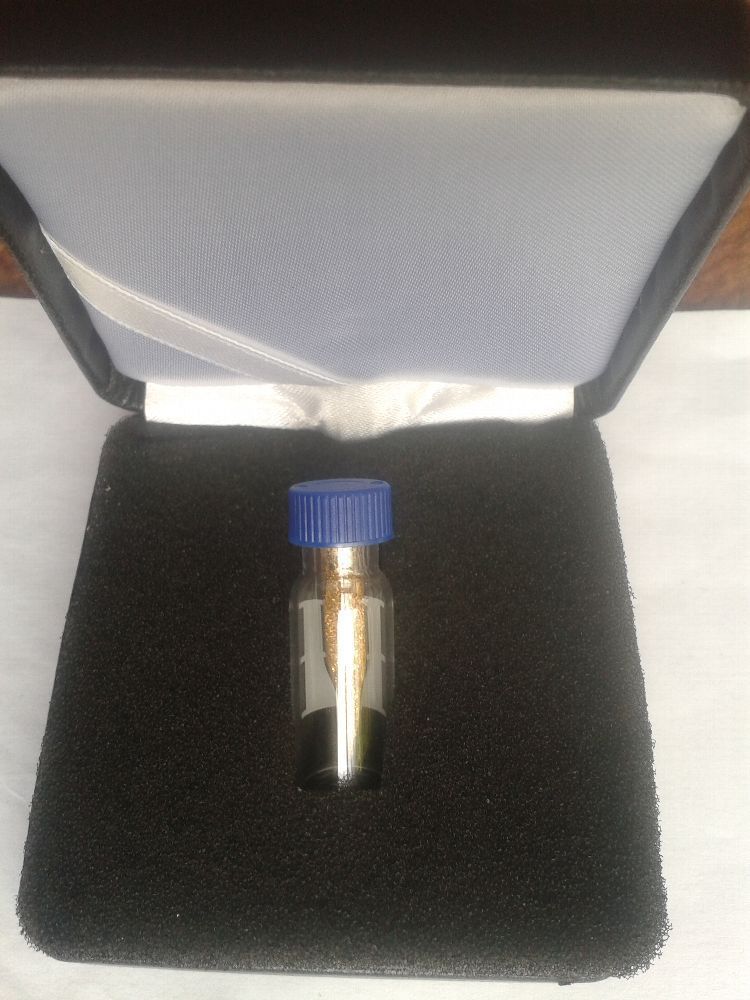 1g Goldflitter aus dem Rhein gewonnen. Im Aufbewahrungsgläschen und im Etui. Original RHEINGOLD