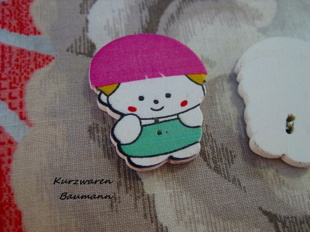 1Holzkinderknopf Kind pink 30x25x3mm 2 Loch a 1mm Nr1109