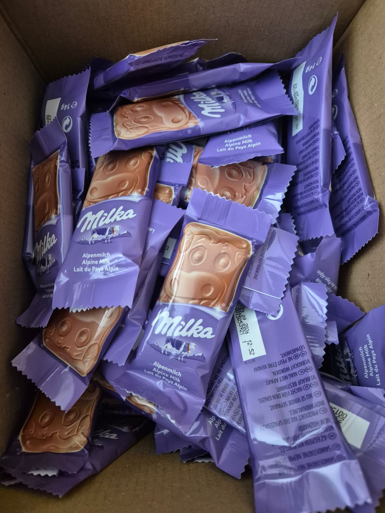 milka alpenmilch mini schokolade snackpack portionsgrösse genussmoment vorrat suessware mischung fasnacht feier candy bar sweet table wurfmaterial vereinsaktion büro empfang wartebereich kinder geburtstag geschenkbox