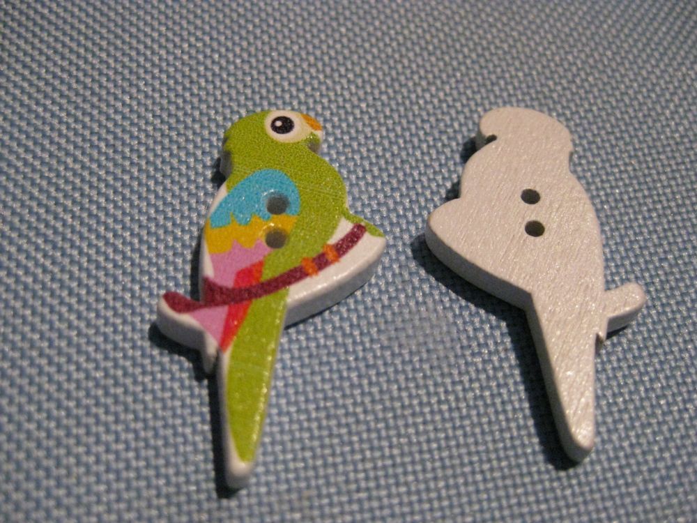 1Kinderknopf Holzknopf Papagei hellgrün 35x19x4mm 2 Loch 2mm Nr 163